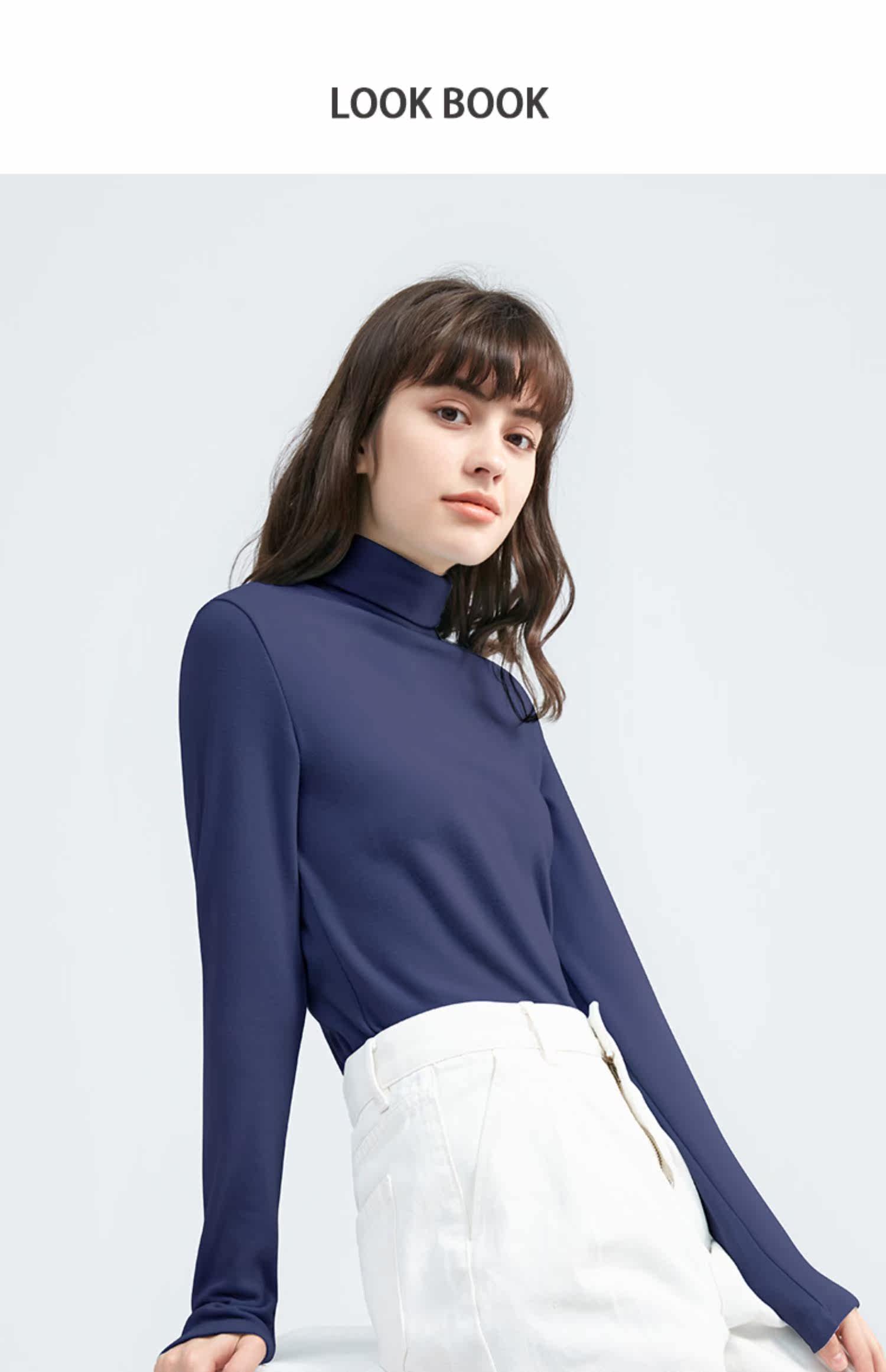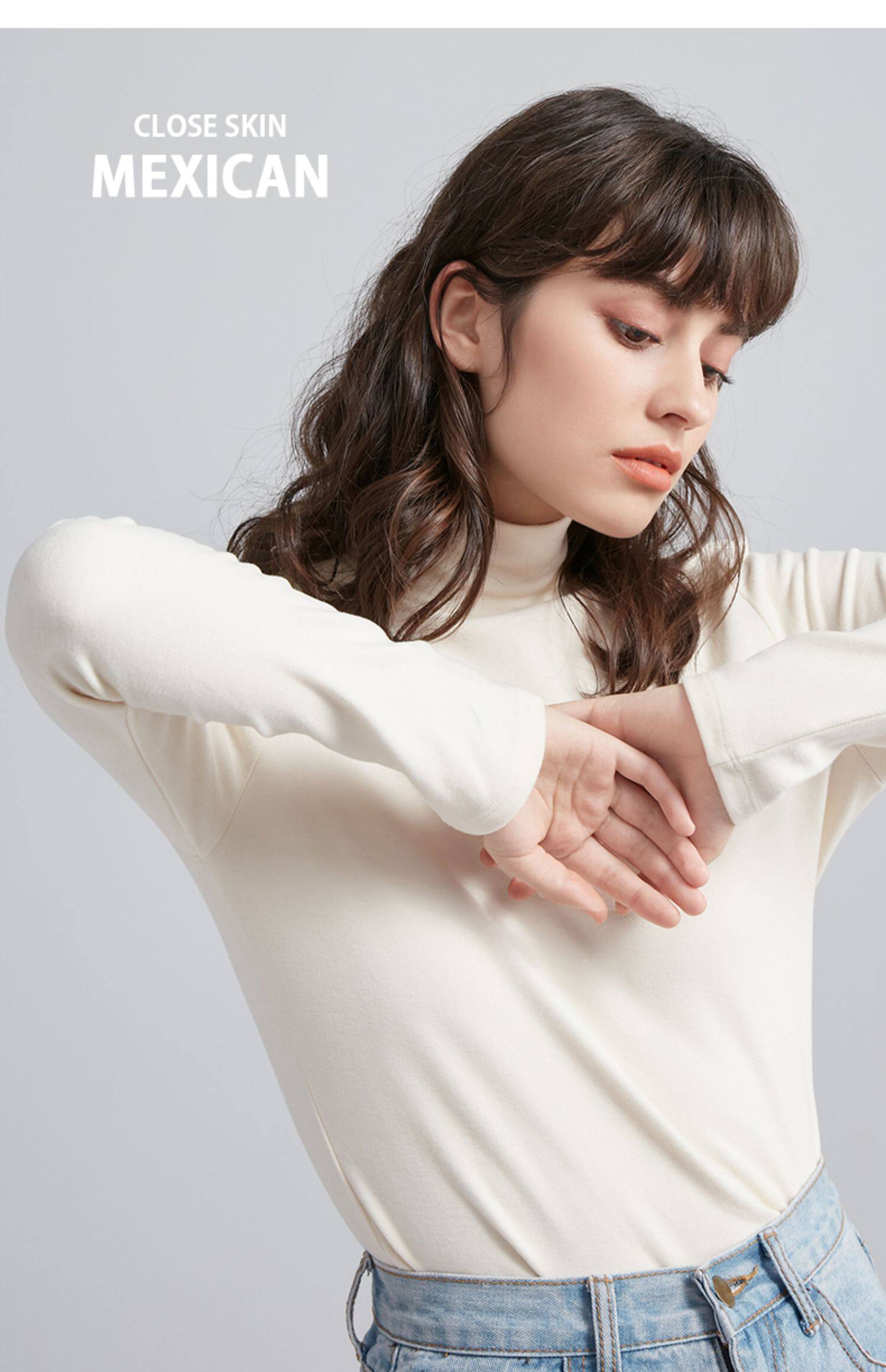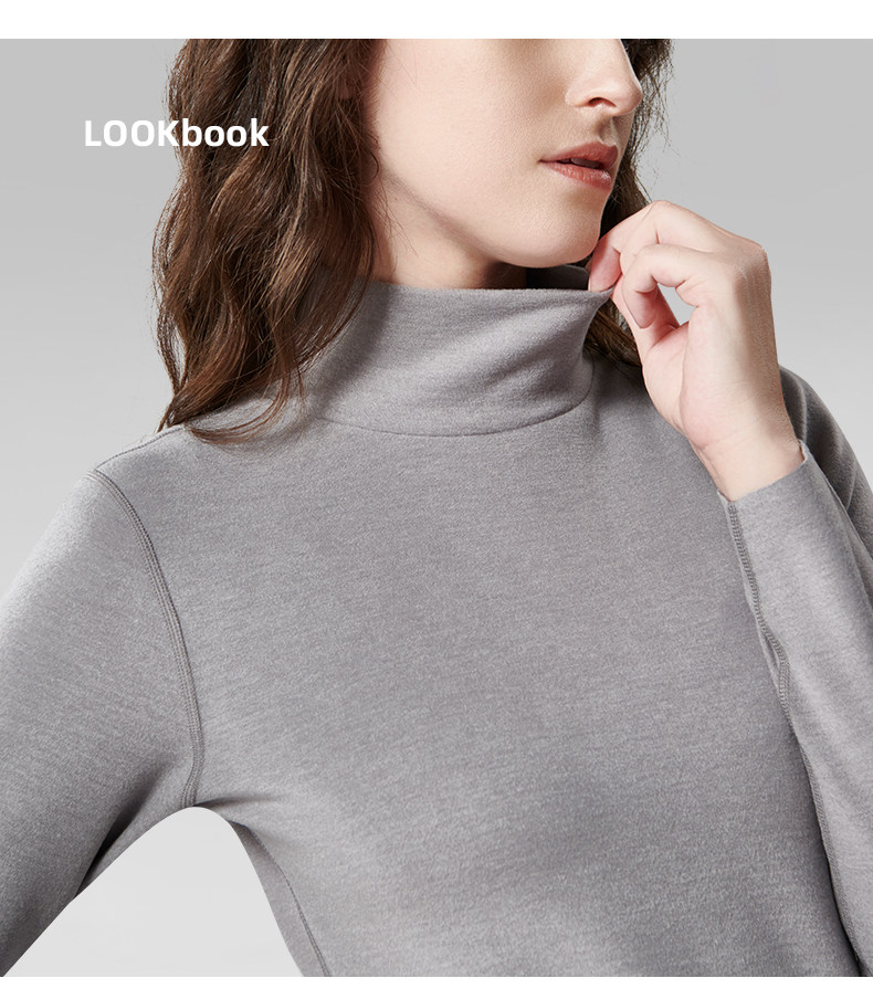 Базовая приятная телу удерживающая тепло бархатная шерстяная утепленный лонгслив, высокий воротник