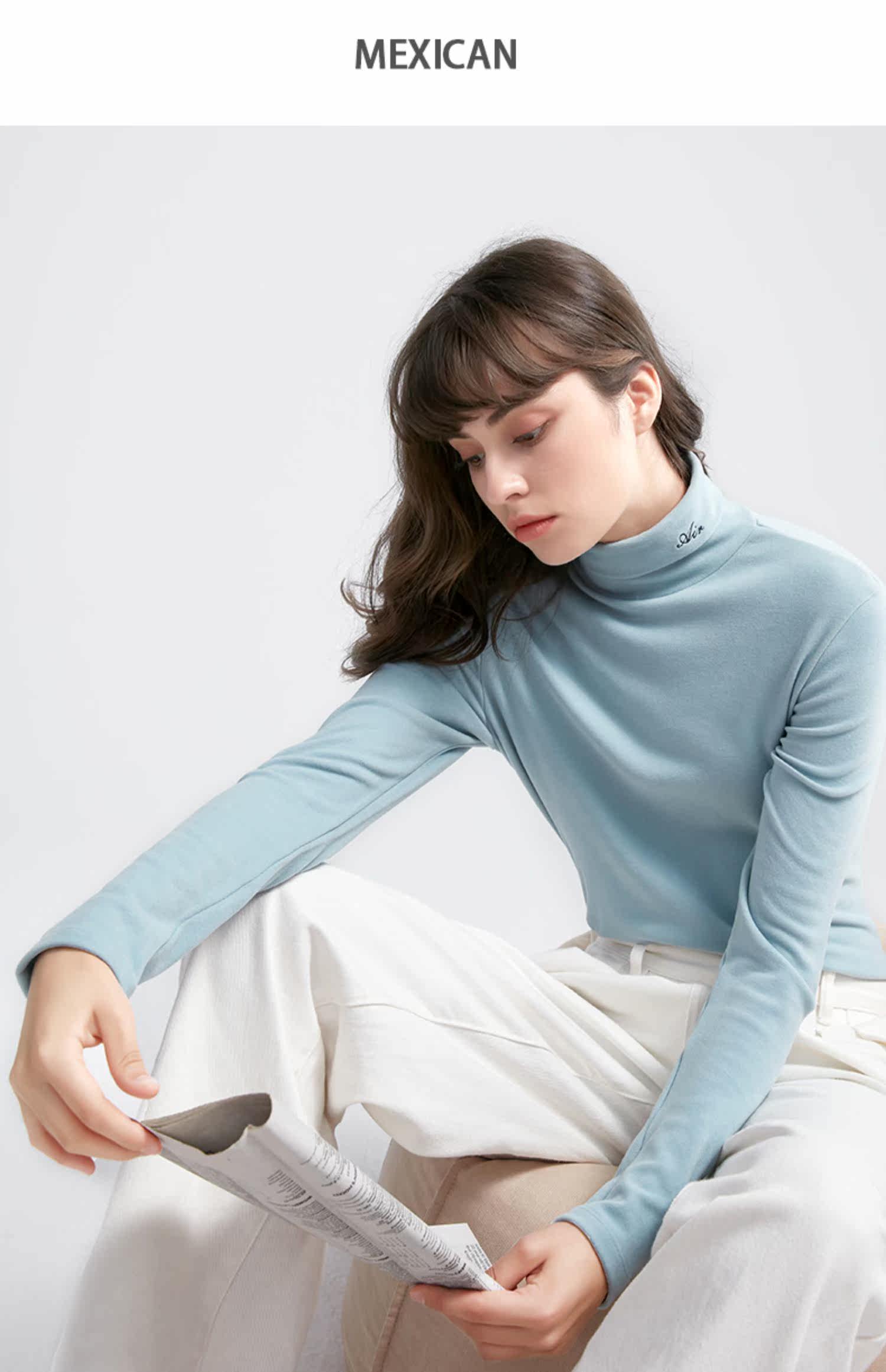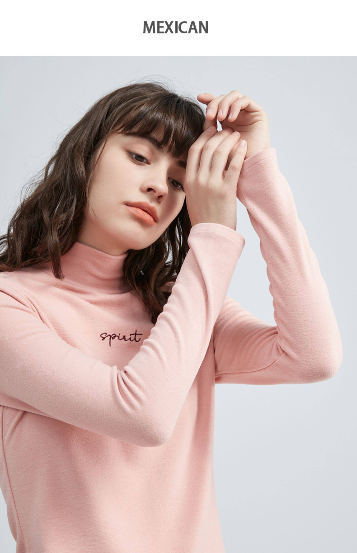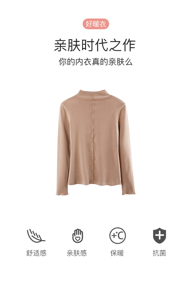 Базовая приятная телу удерживающая тепло бархатная шерстяная утепленный лонгслив, высокий воротник
