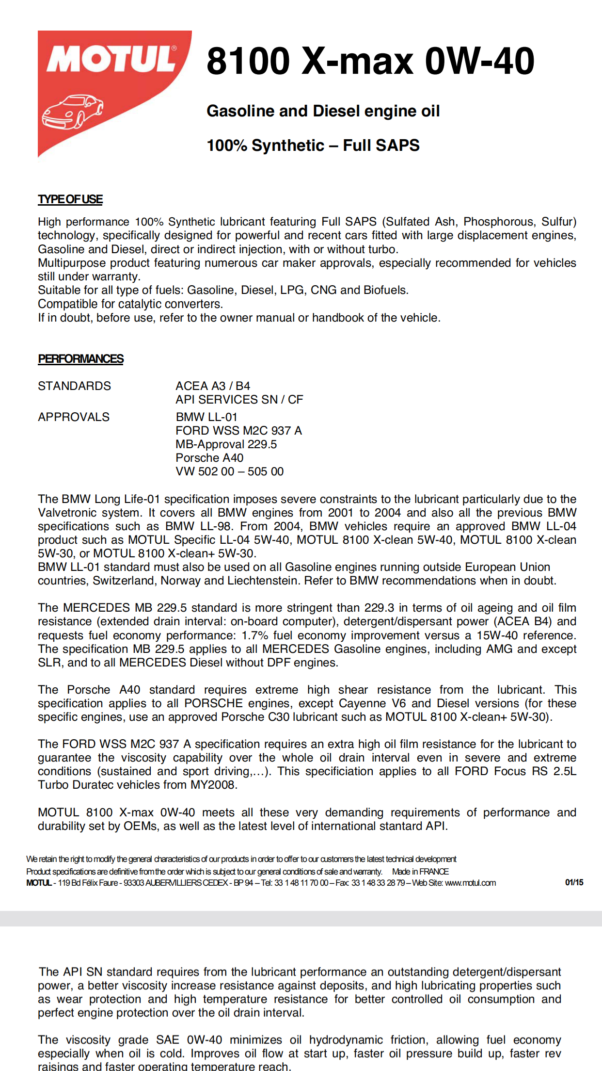 BMW: LL-01, Mercedes-Benz: MB229.5, Volkswagen: VW502-505, Porsche: A40, Ford WSS M2C 937A