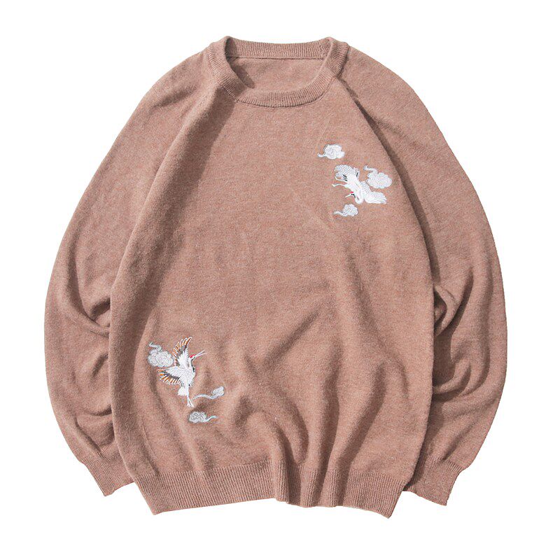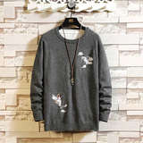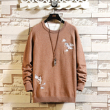 Свитер, ретро ханьфу, трикотажная утепленный лонгслив, китайский стиль, с вышивкой