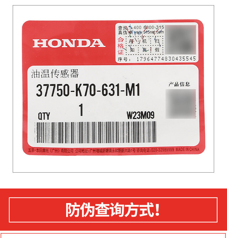 Wuyang Honda Fireent Eyes CB190 Eagle Fighting War Eagle CBF190TR Датчик температуры масла Оригинальный подлинный