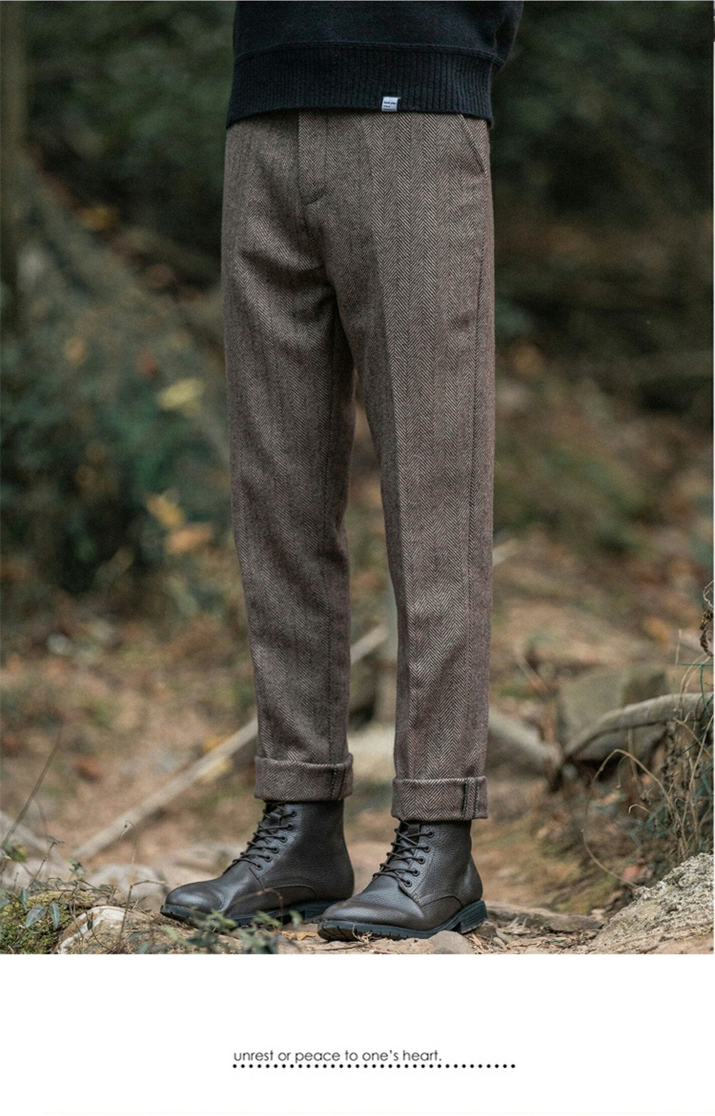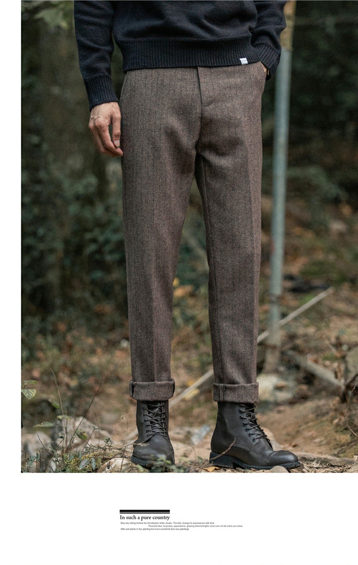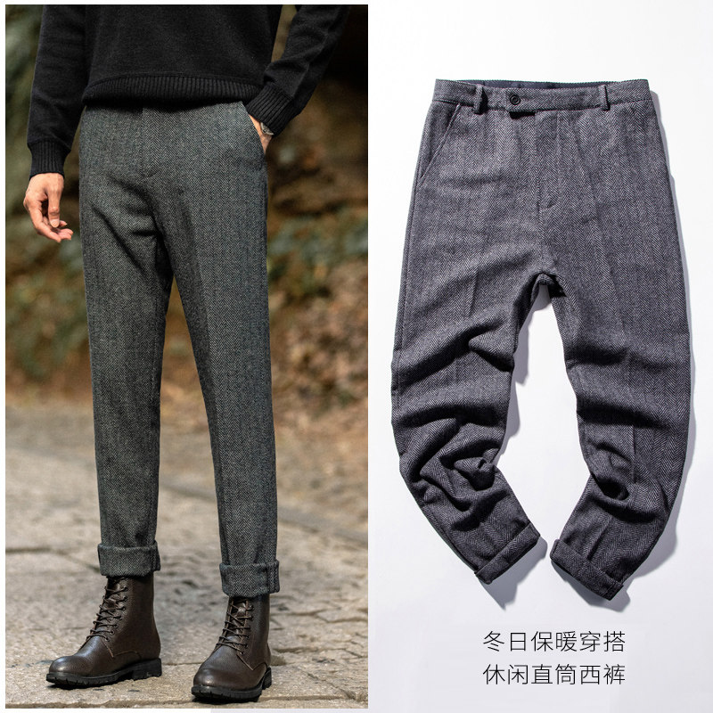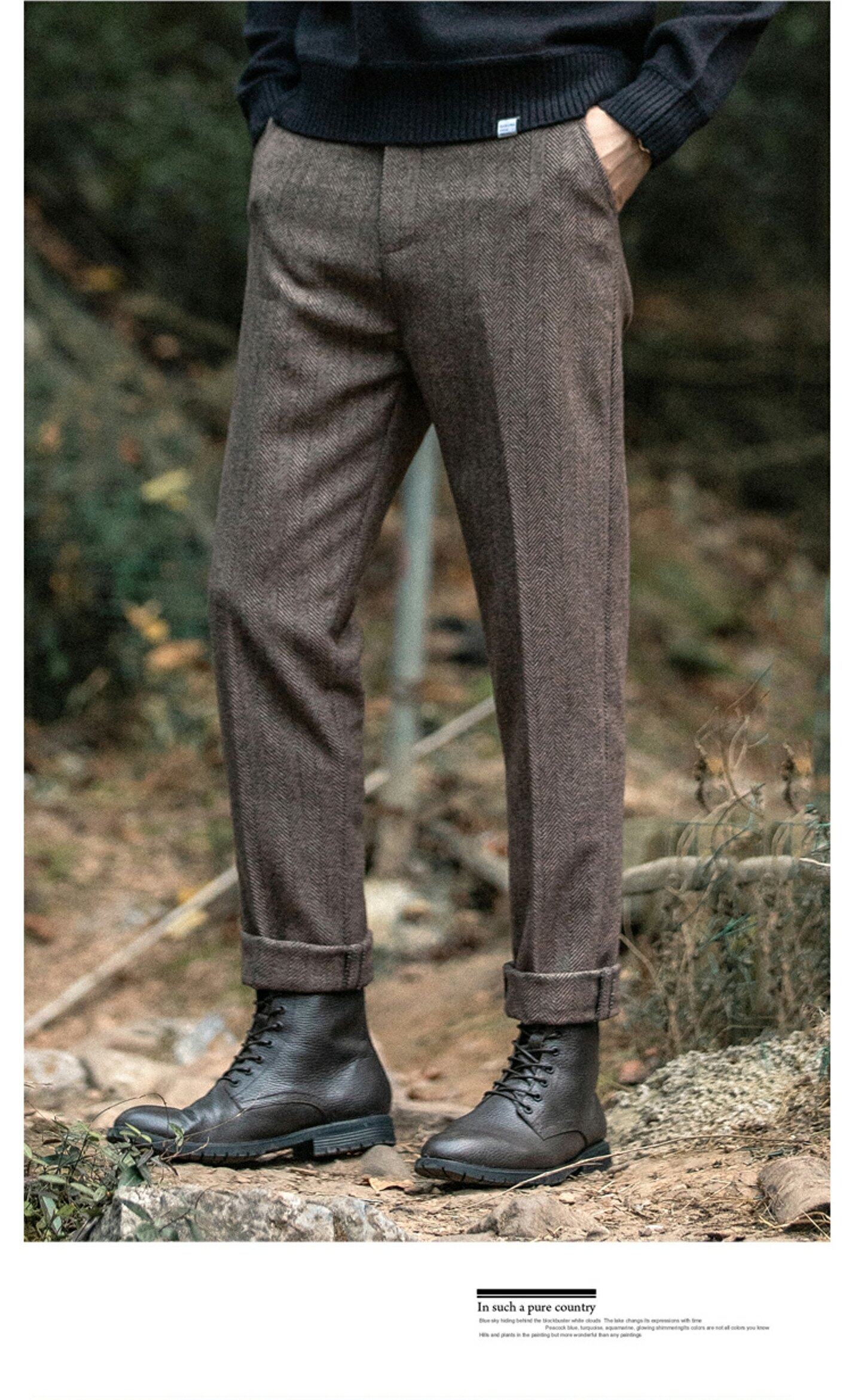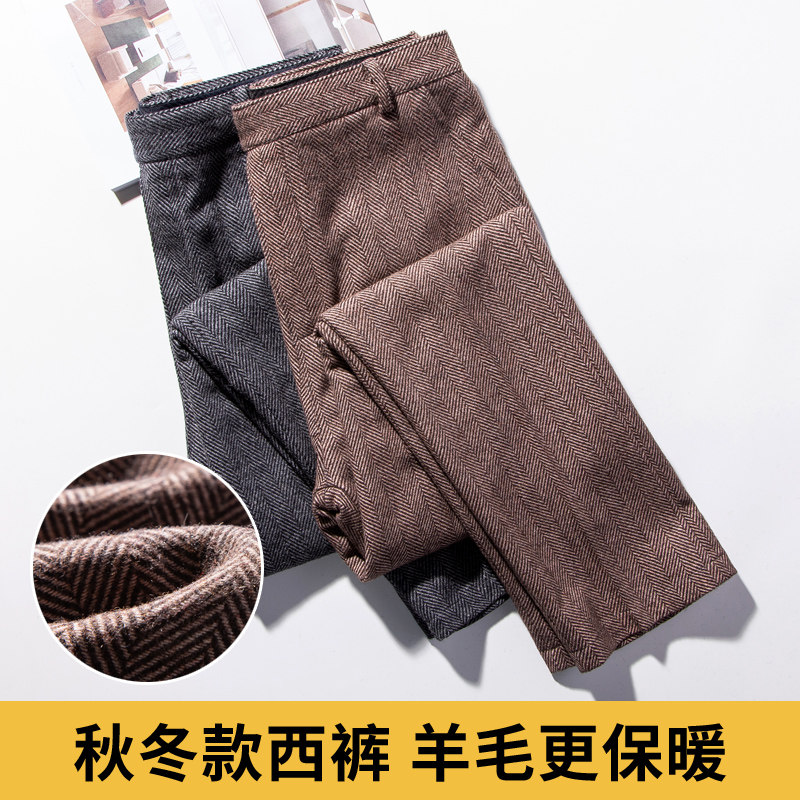 Демисезонные шерстяные ретро штаны, большой размер, в американском стиле, свободный прямой крой