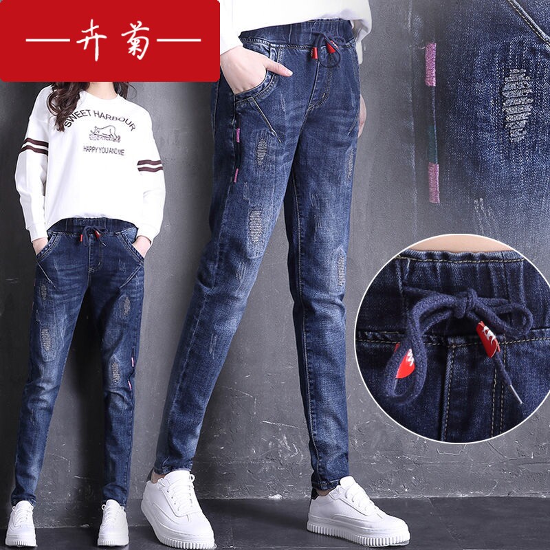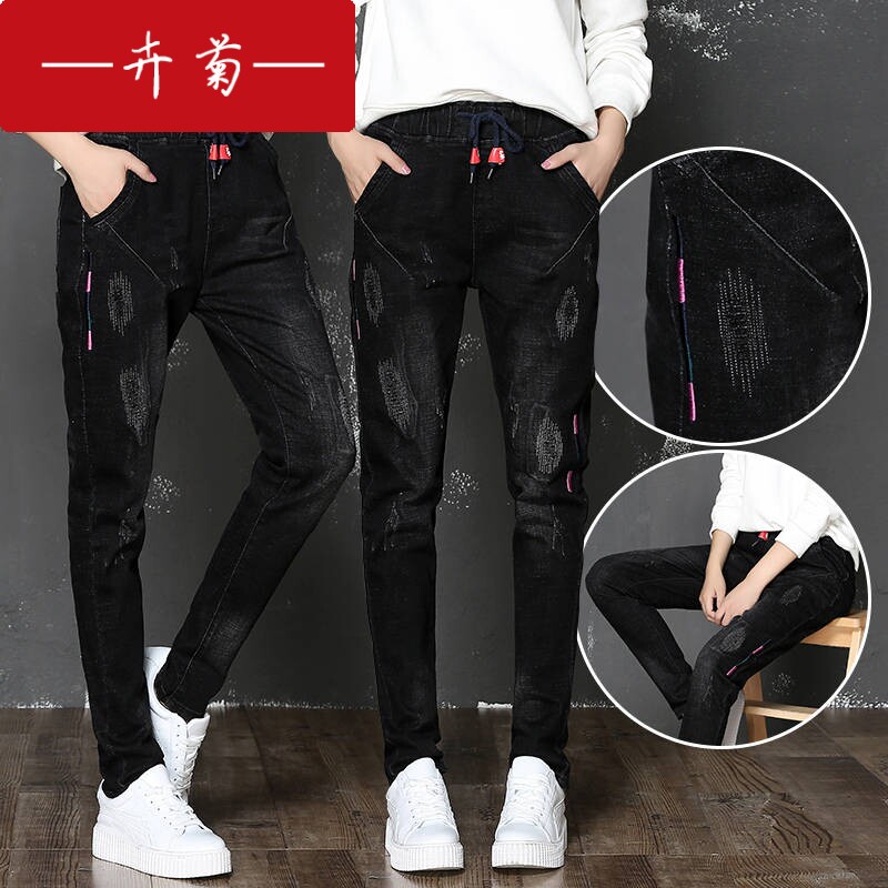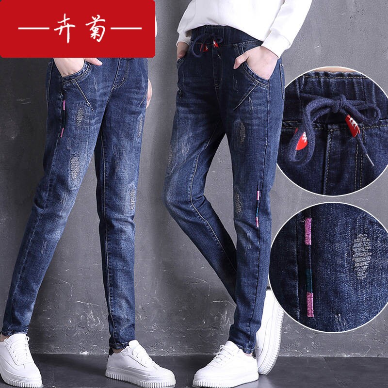 卉菊 Джинсы, осенние штаны для школьников и студентов, эластичная талия, 2020, в корейском стиле