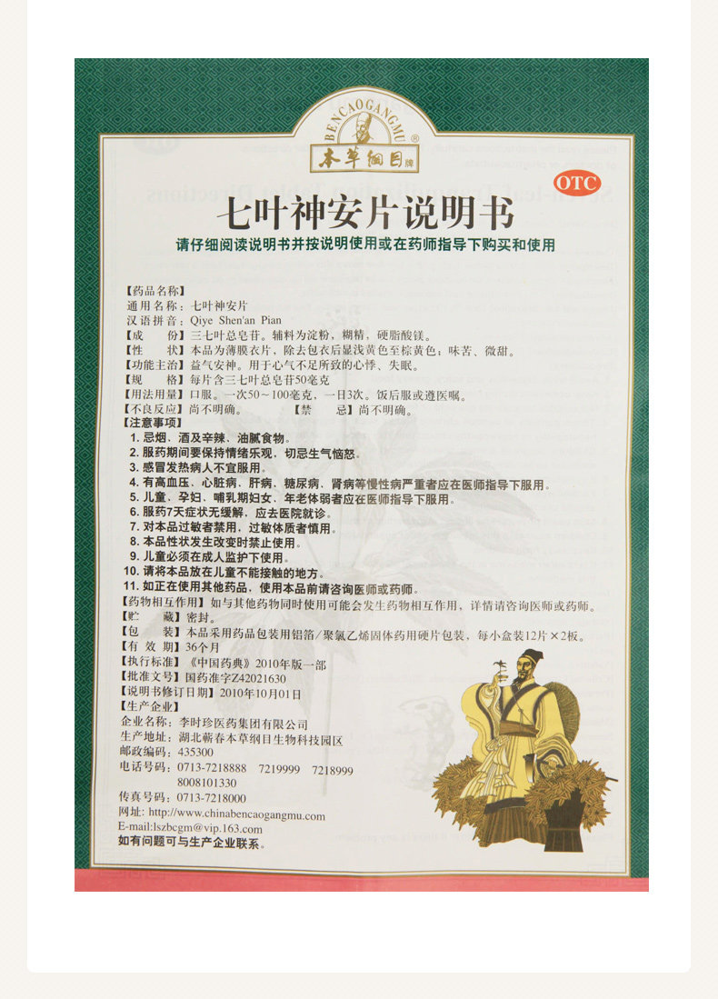 本草纲目 Qiye Shen Ansang 24 таблетки из спящих таблеток Qiye Shenkamu Таблетки и лицо ботаника улучшает сон
