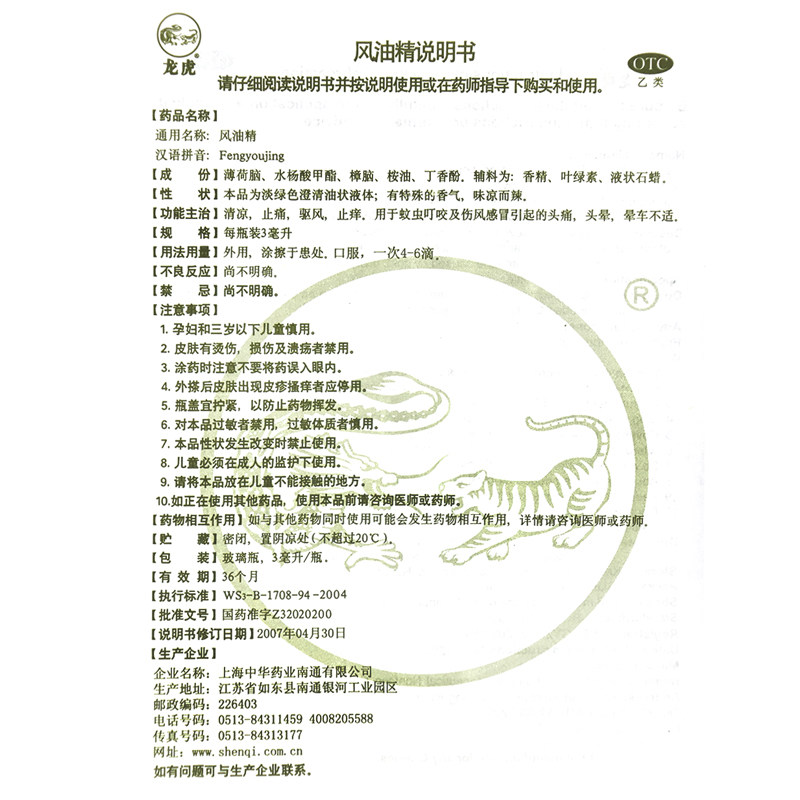 龙虎 Эссенция ветряного масла 3 мл анти -силова