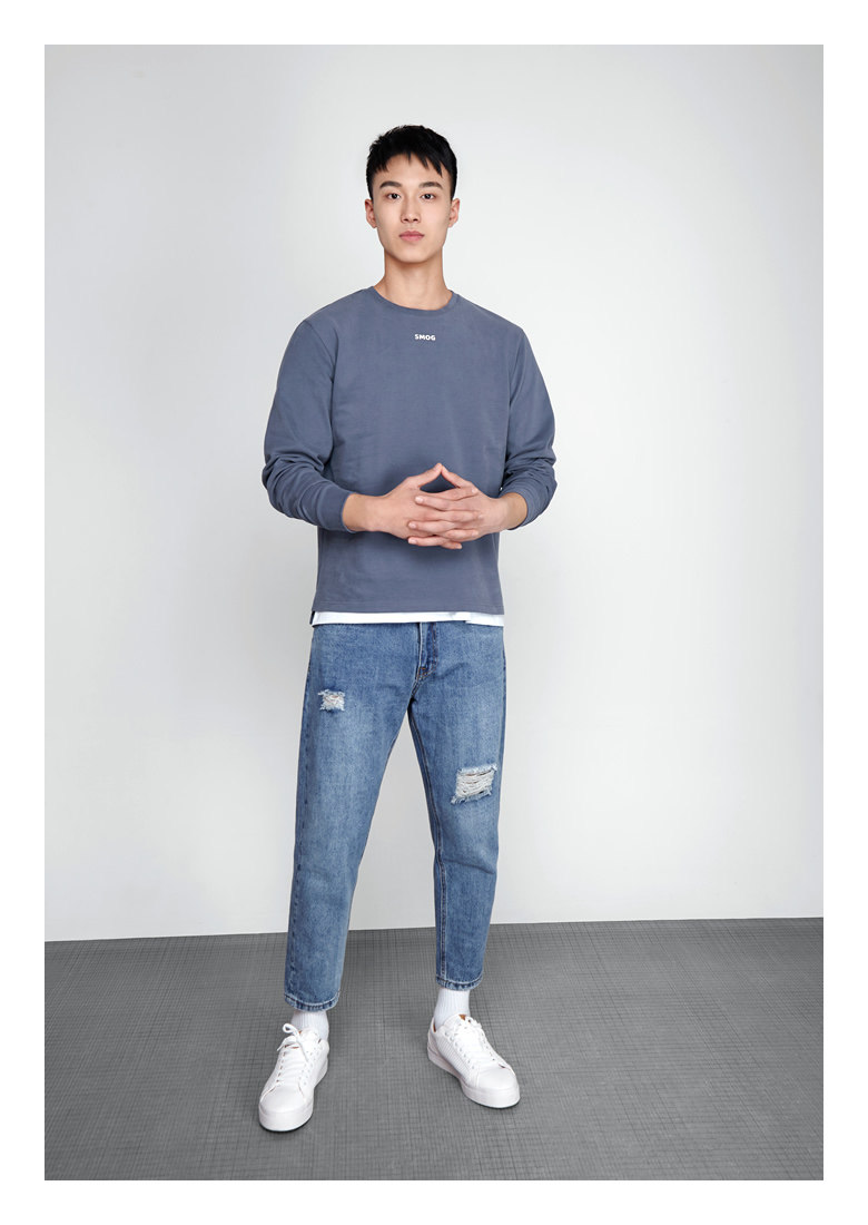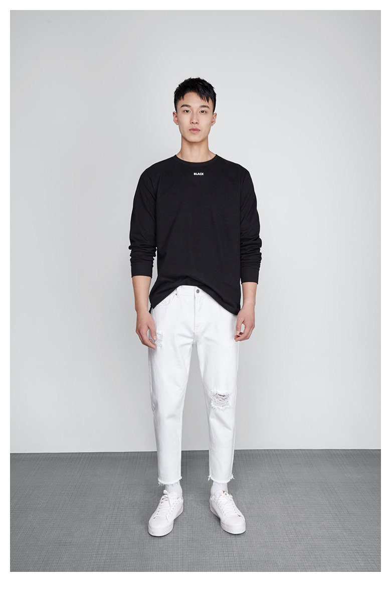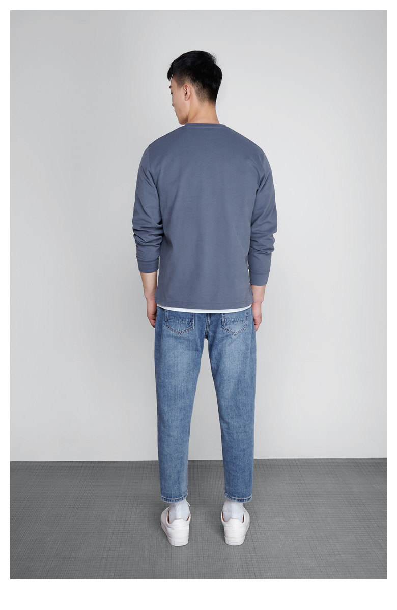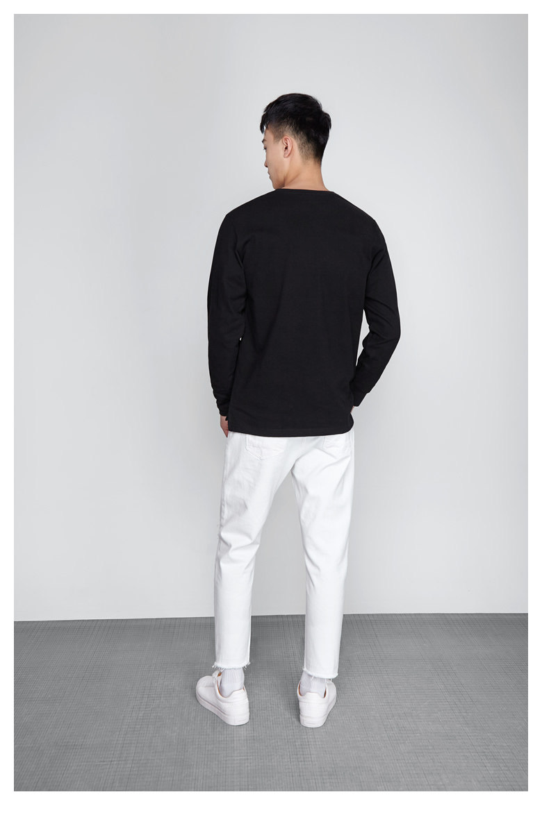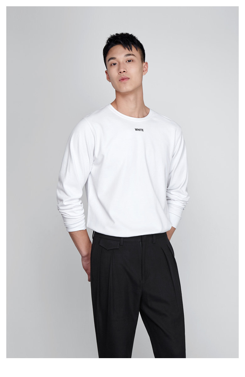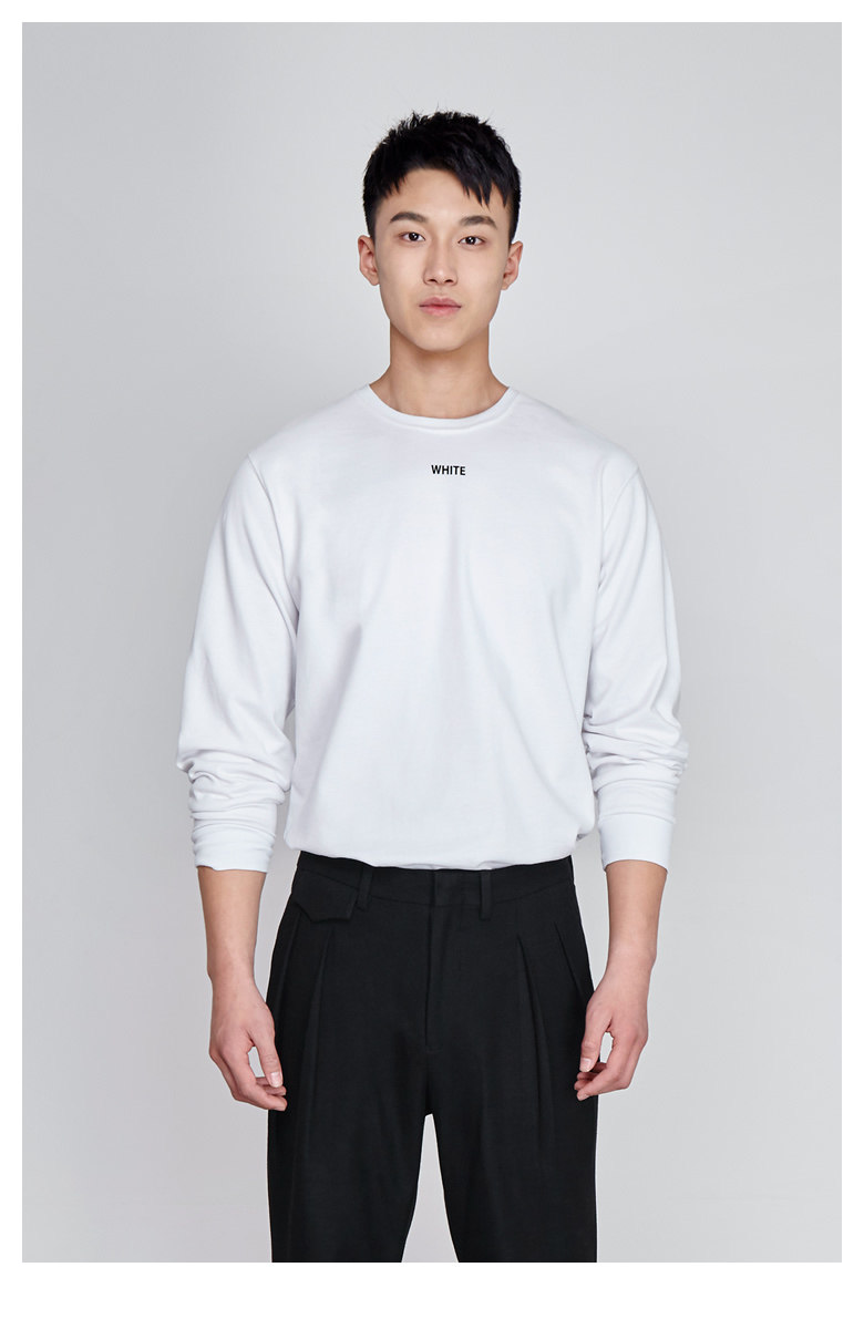 Длинный осенний хлопковый трендовый белый лонгслив с круглым воротником, оверсайз, увеличенная толщина