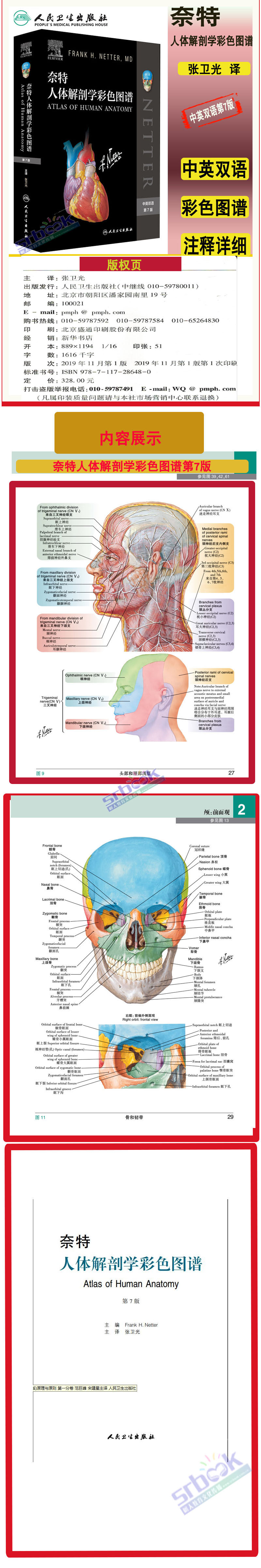 [Новая версия] Цветная карта рыцарной анатомии человека (7 -е издание) Седьмое издание анатомии Цвет Карты Западной медицины Клиницист Студент Справочный инструмент Анатомия Анатомия Книга Китайская двуязычная контрастная наука