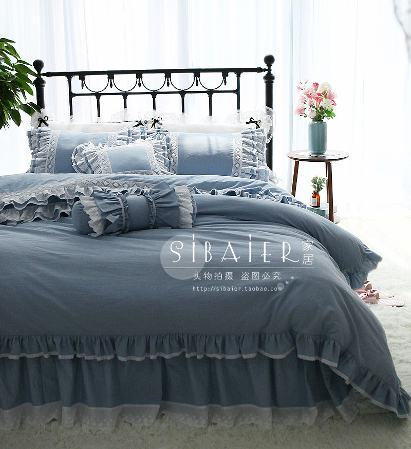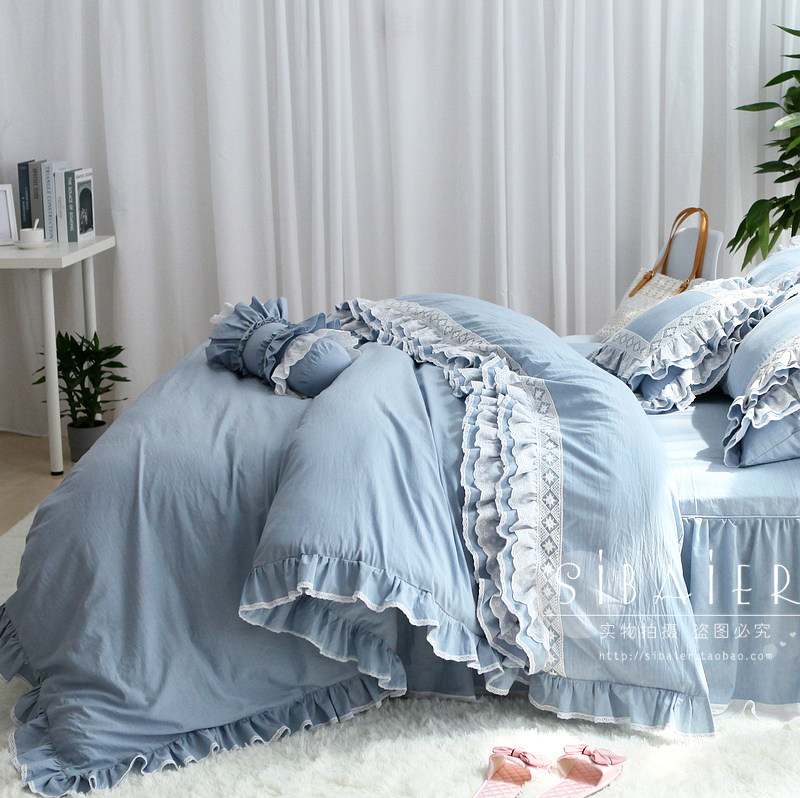 Корейское хлопковое покрывало для принцессы, пододеяльник, комплект, в корейском стиле, 4 предмета