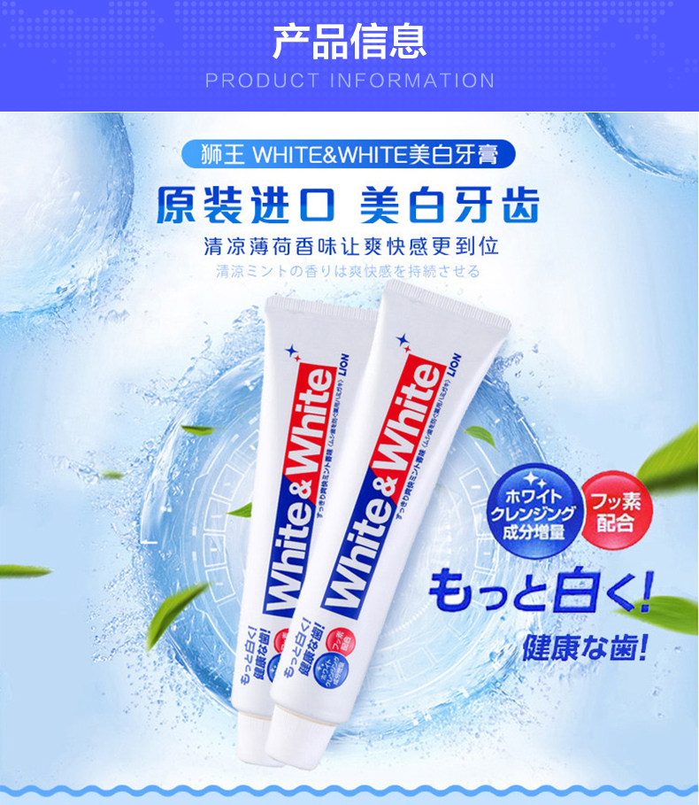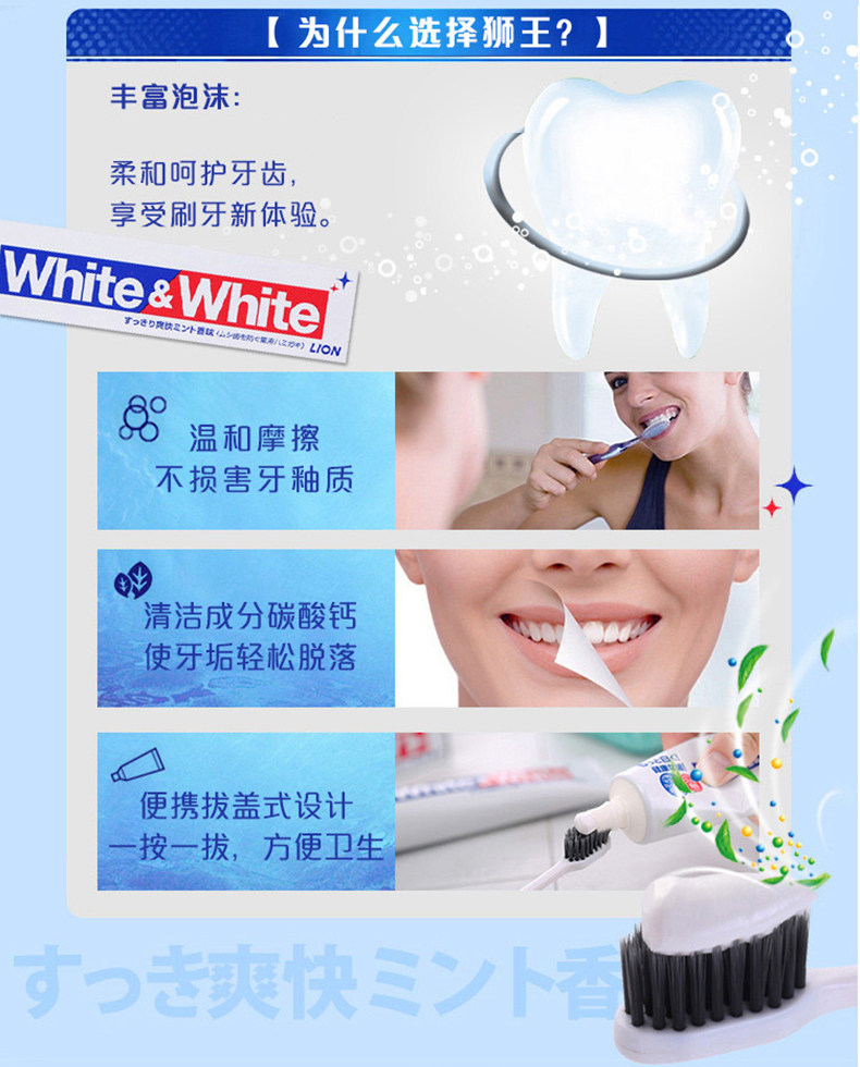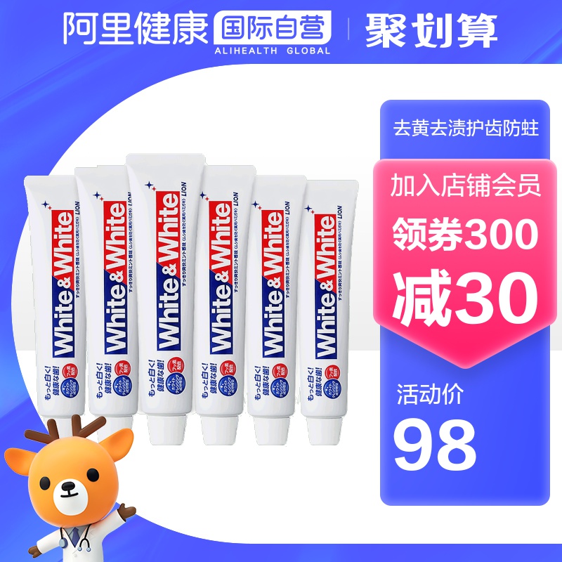 Японская льва Льва Король Король Белый отбеливающий зубная паста Мята Удаление желтого удаления дыхания, чтобы защитить зуб, чтобы предотвратить моли 150 г*6