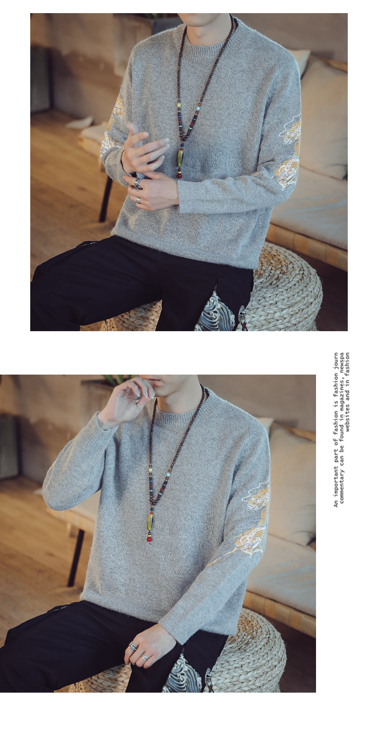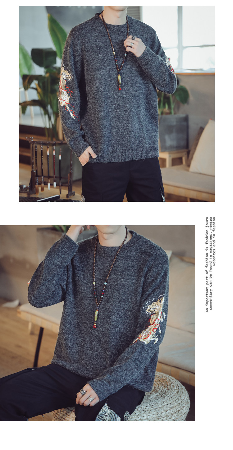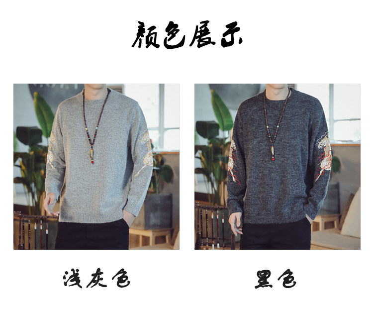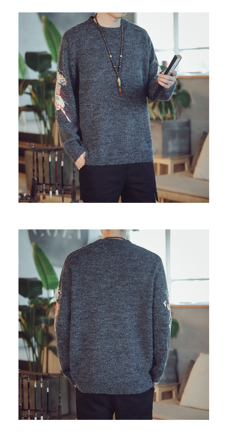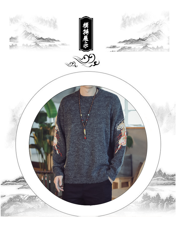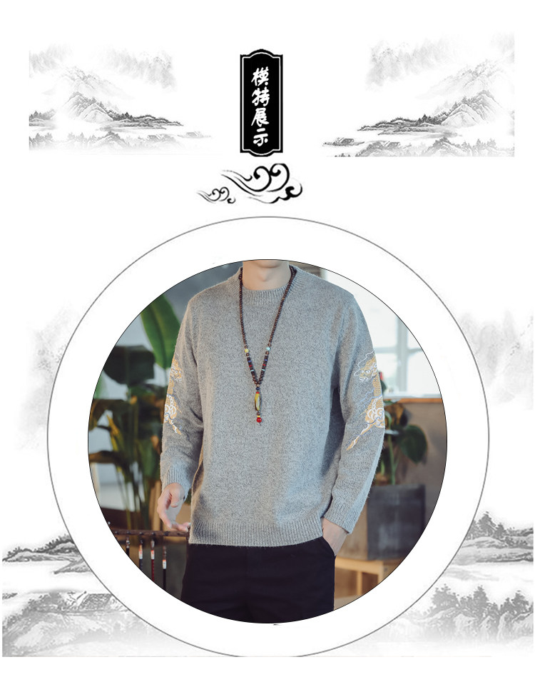 Осенний трикотажный свитер с круглым воротником, китайский стиль, с вышивкой, большой размер
