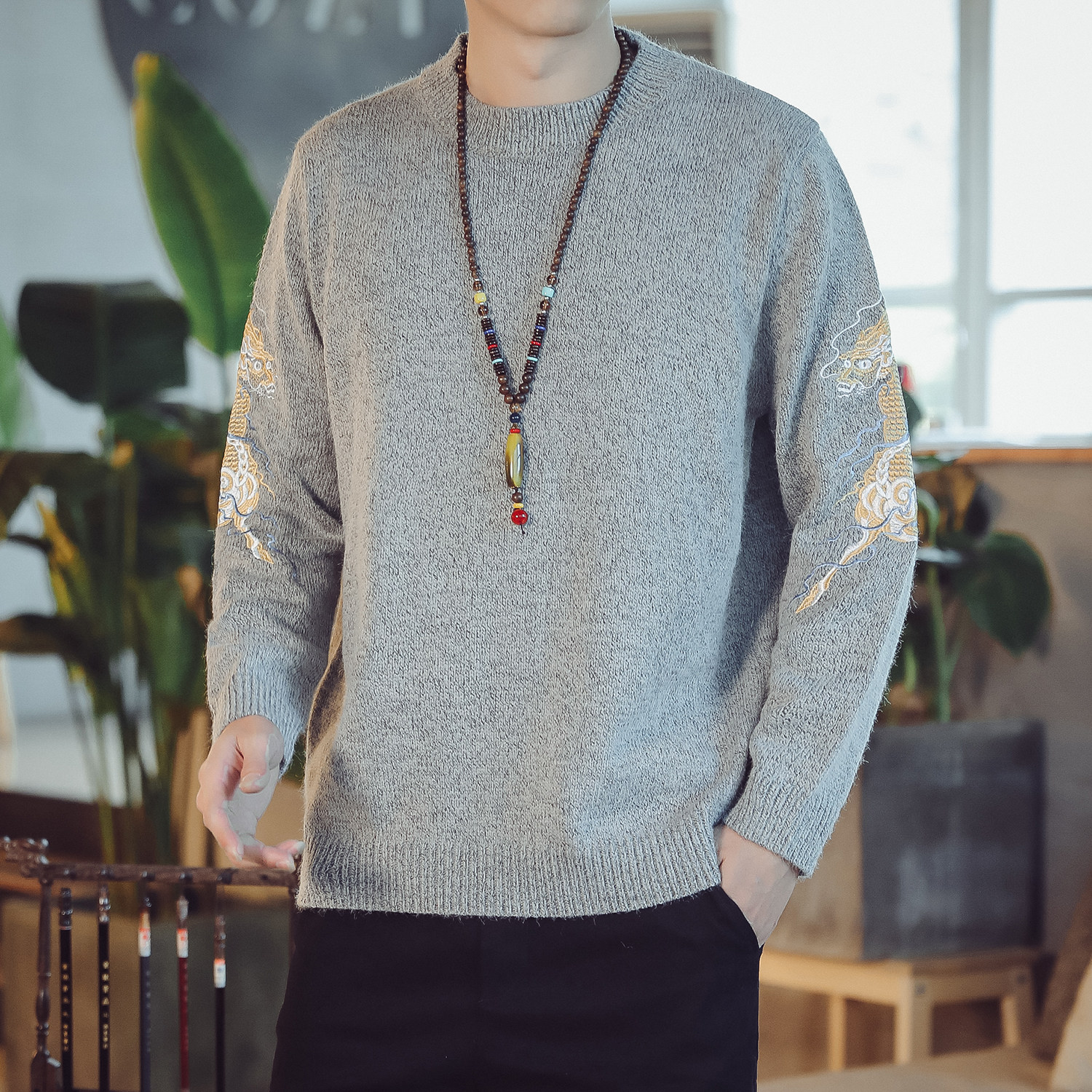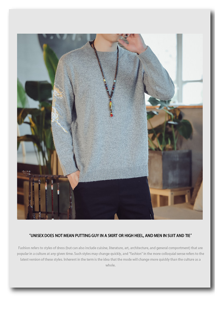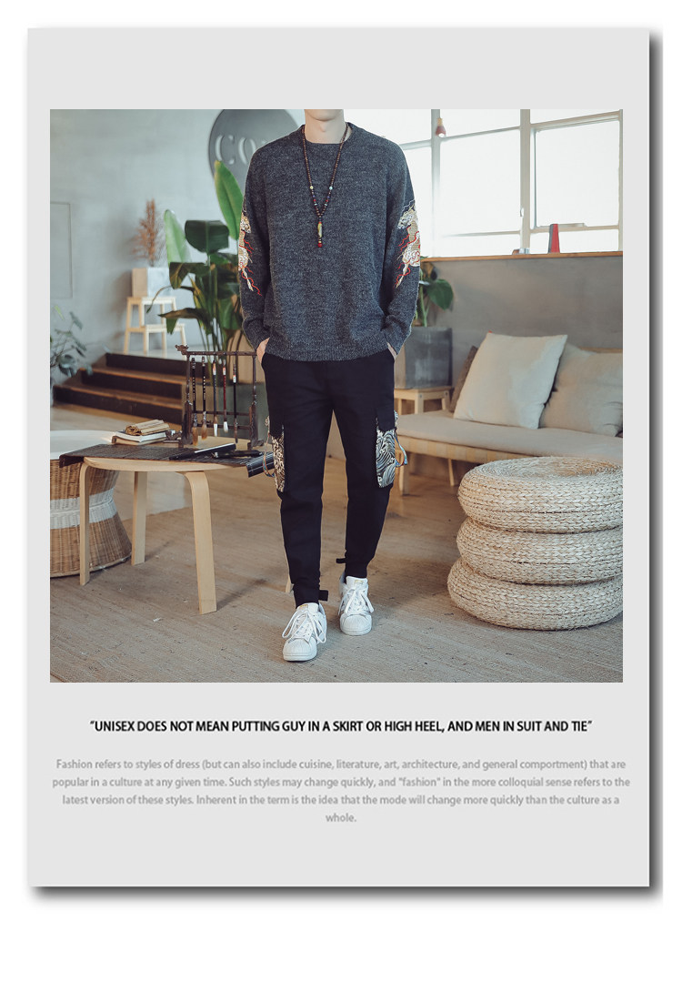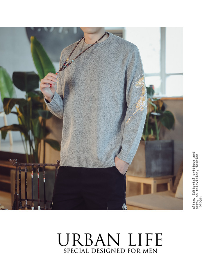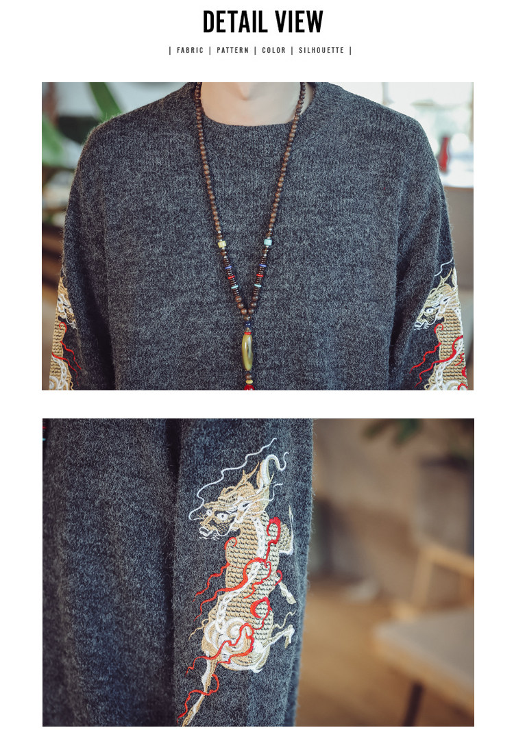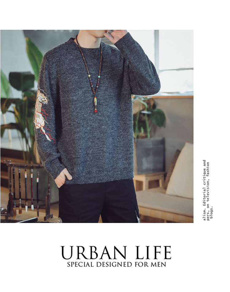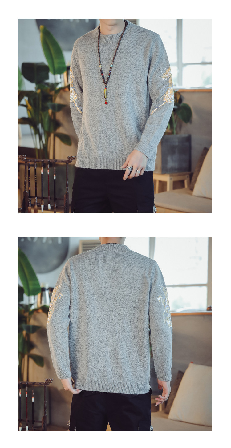Осенний трикотажный свитер с круглым воротником, китайский стиль, с вышивкой, большой размер