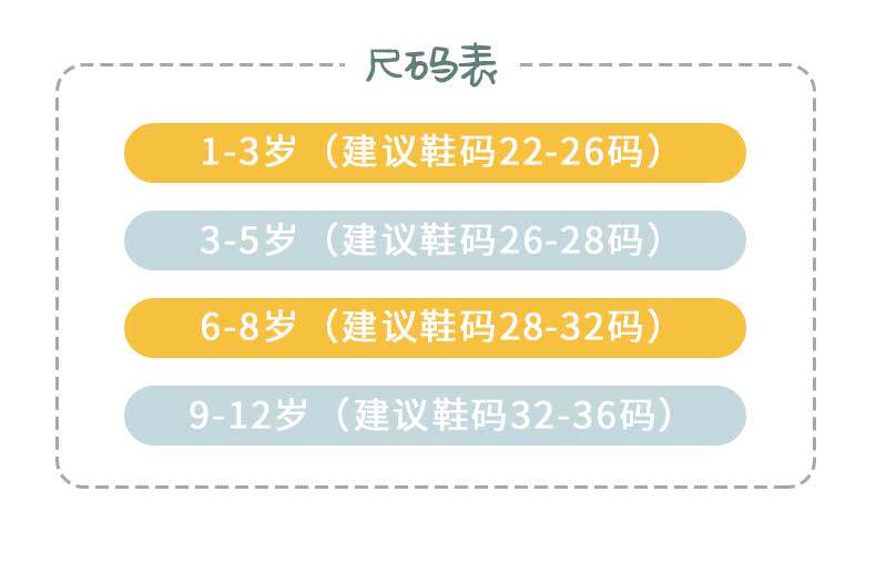 | Возрастная категория: | 1-4 года (рекомендуется код обуви около 22-27 ярдов), 5-8 лет (рекомендуется код обуви около 28-32 ярдов), 9-12 лет, 32, 36 |