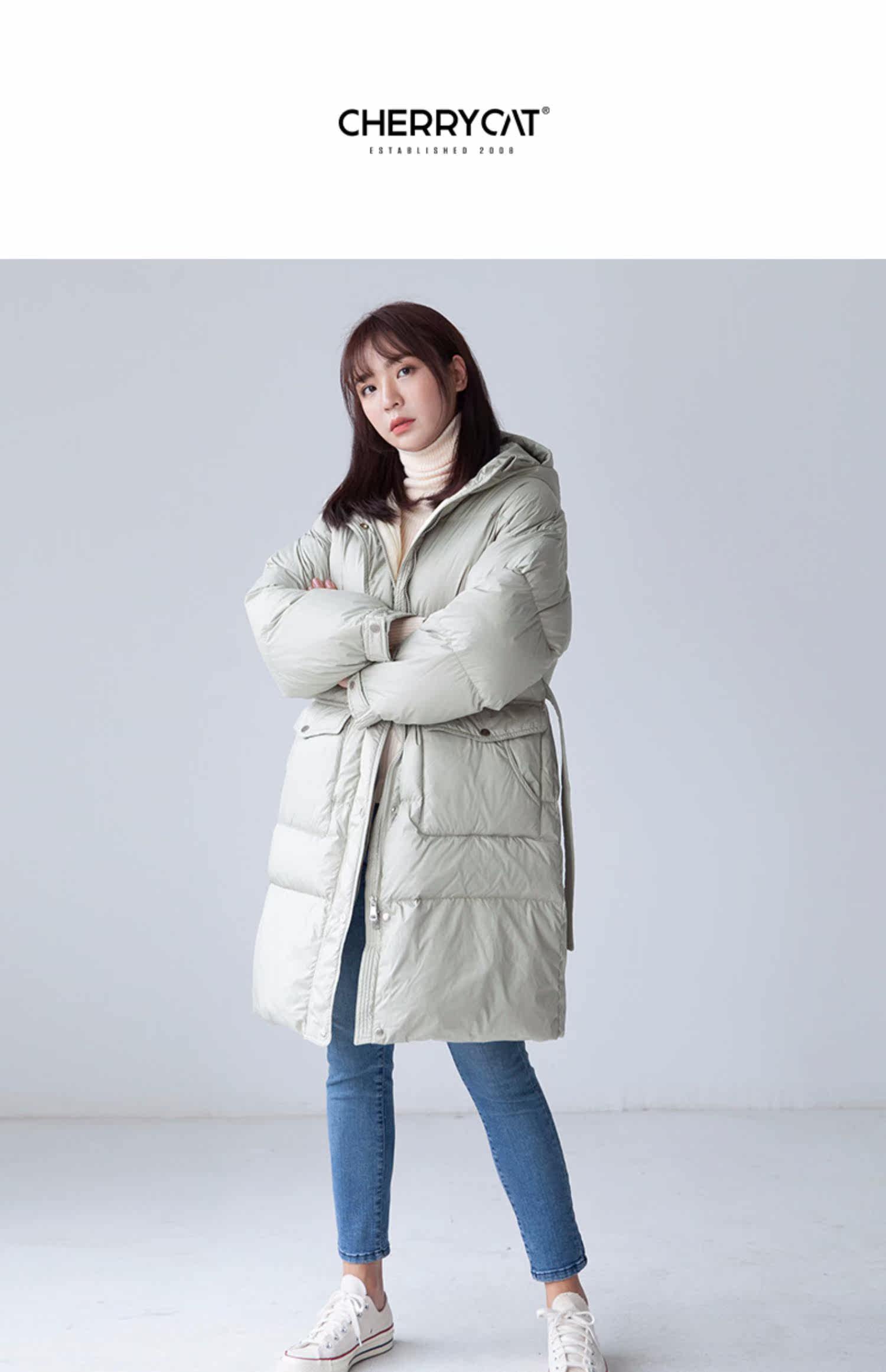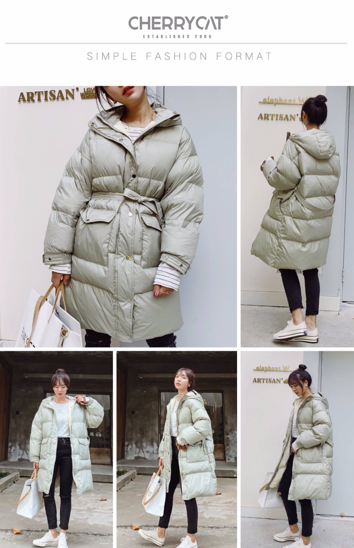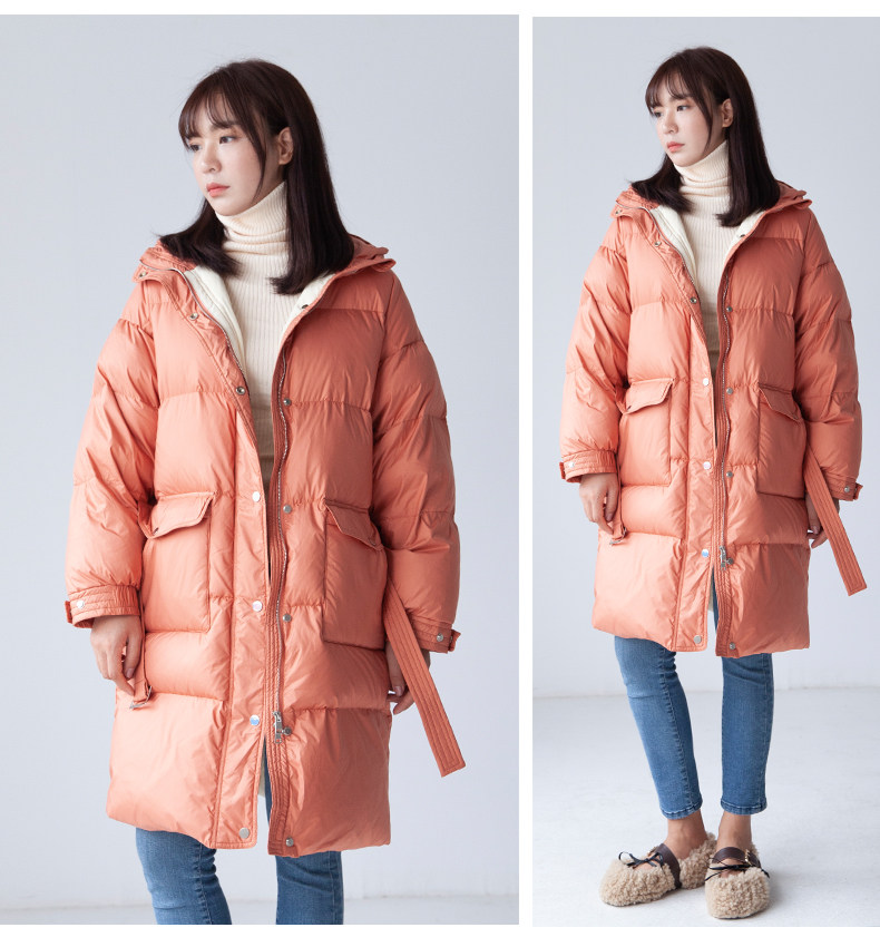 Пуховик, модная толстовка с капюшоном, куртка, 2019, длина макси, в корейском стиле, увеличенная толщина, свободный крой
