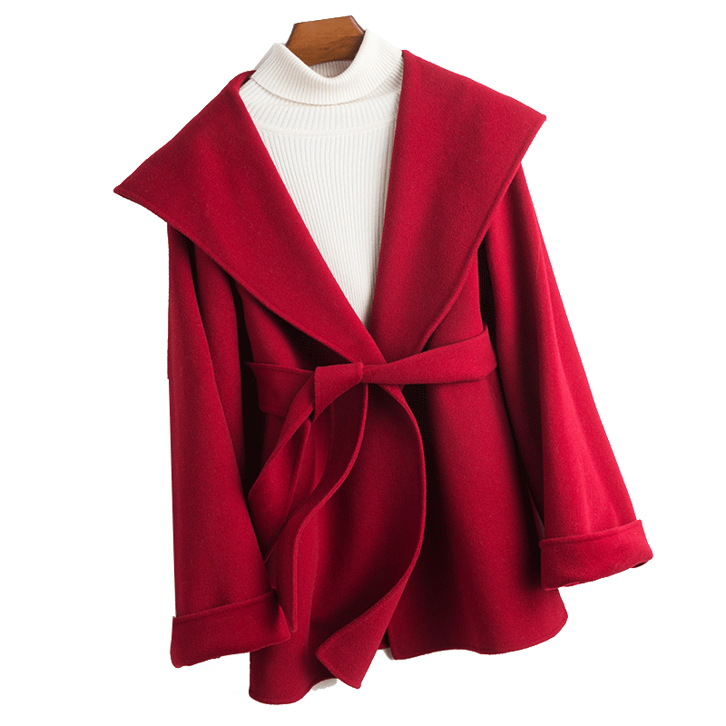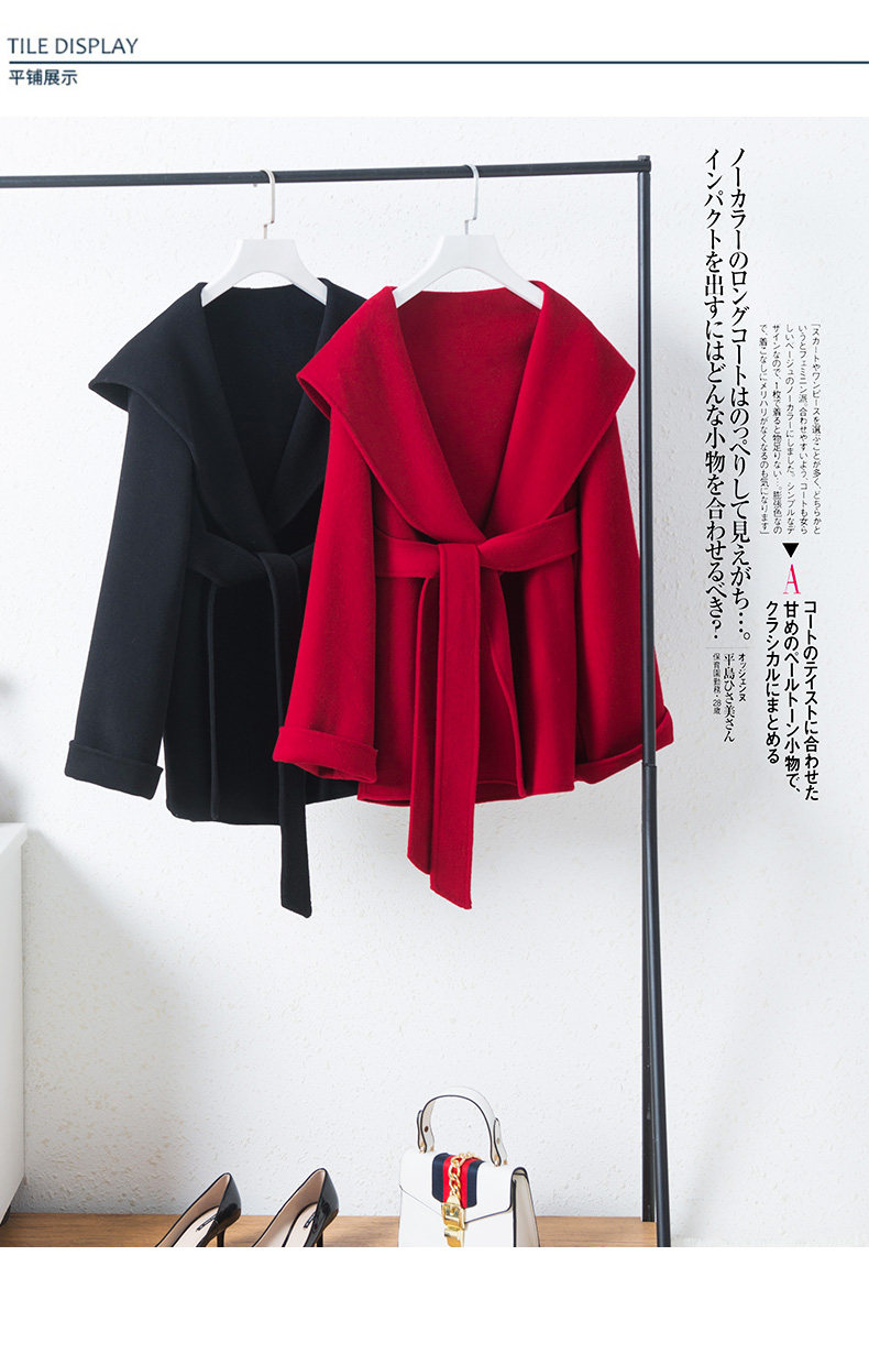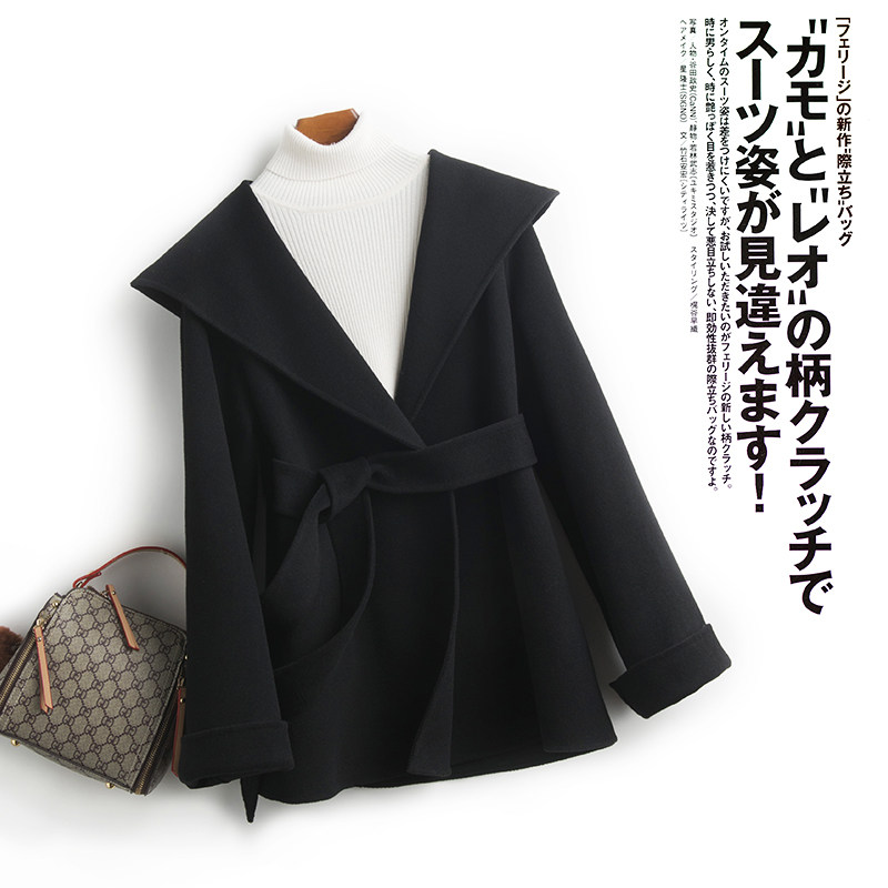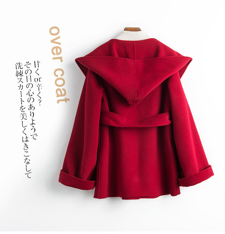 Короткое двусторонное шерстяное демисезонное кашемировое шерстяное пальто с капюшоном, подходит для подростков, увеличенная толщина