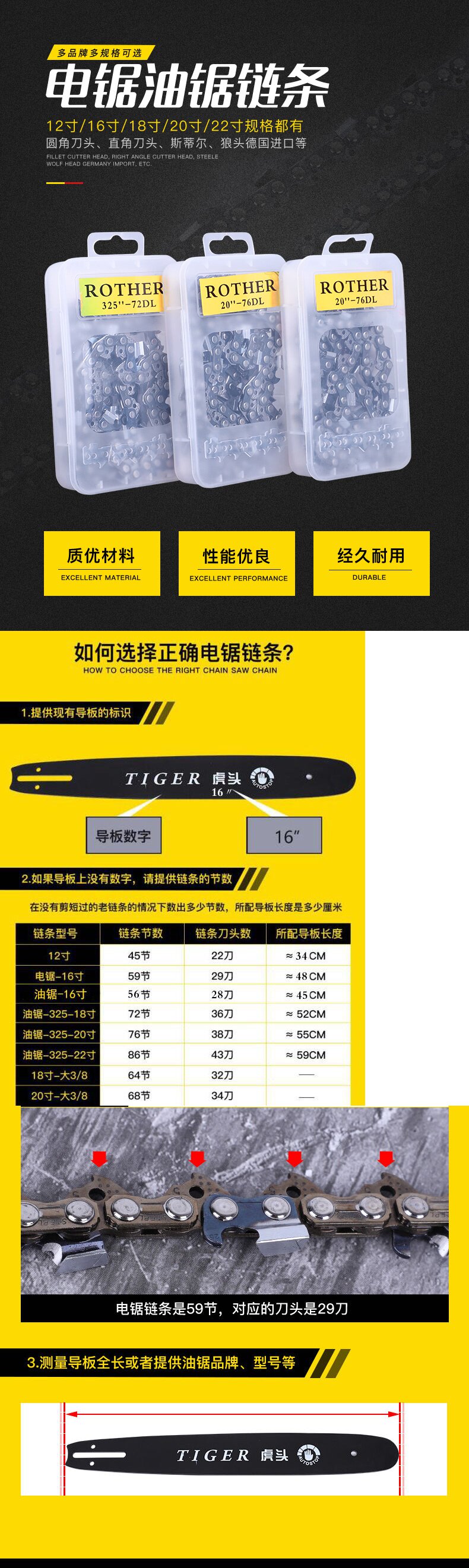 Цепная пила цепь 12 -дюймовая 16 -дюймовая 18 -дюймовая 20 -дюймовая импортная тигрная головка 405 Электрическая цепная пила -домика с разбитой пилы с бензопилой