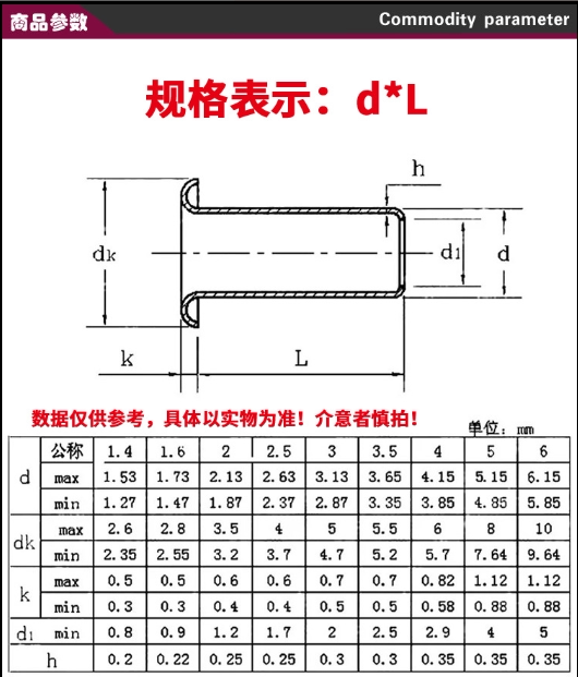 Национальный стандарт Pure Brass Hollow Brivet Copper Corn Fastener M1.3m1.5m1.7m2m2,5m3m3.5m4m5m6