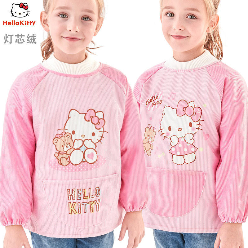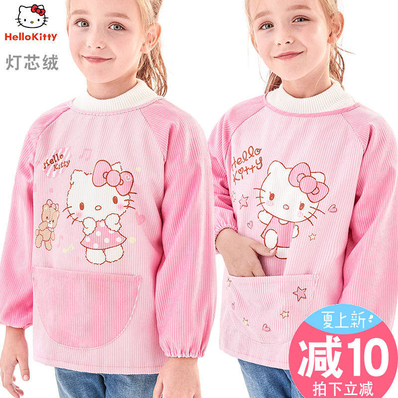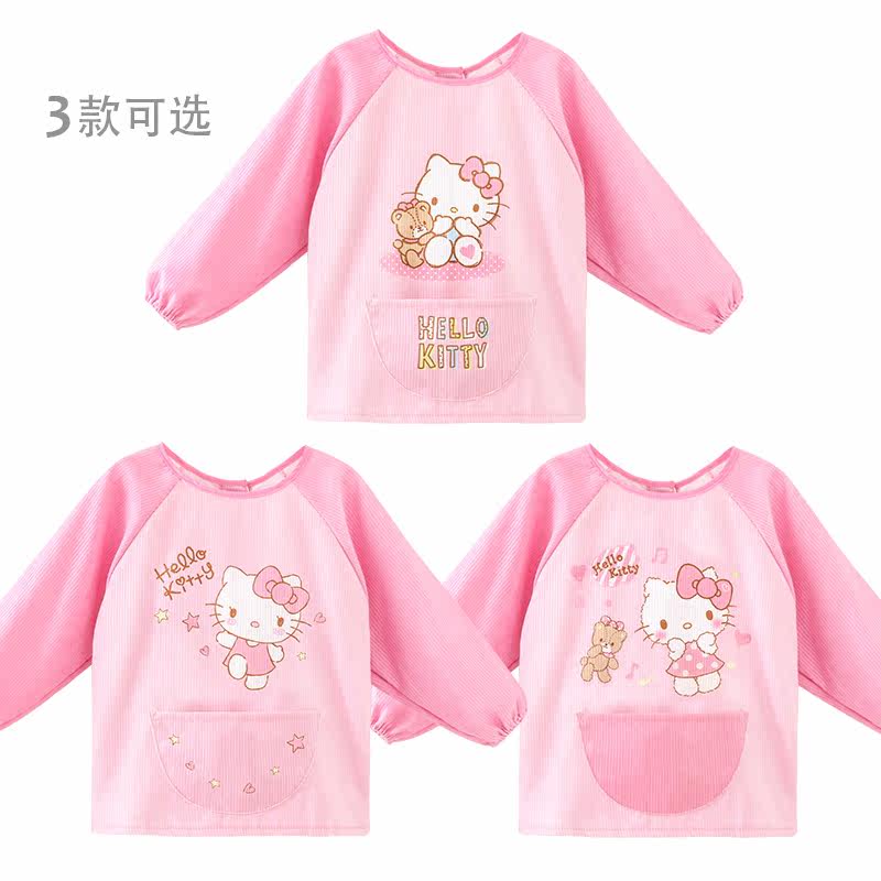 Hello kitty, детский нагрудник, водонепроницаемый фартук для рисования для еды, анти-грязь, с карманом, сзади на завязках