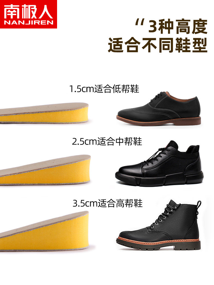 Мужские двусторонние кожаные спортивные стельки для увеличения роста, невидимые полустельки, впитывают пот и запах
