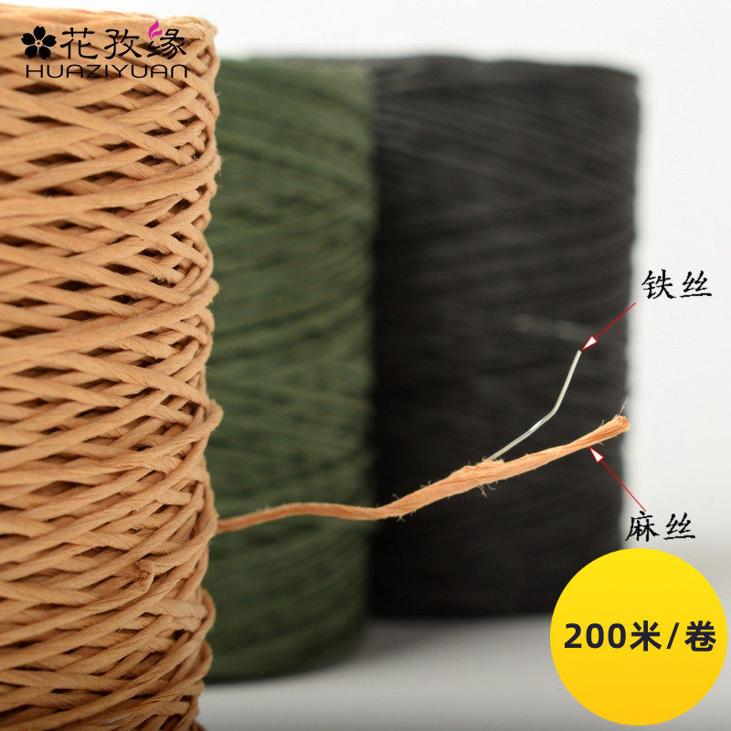 Цветочная упаковка конопляная веревка тонкая железная нить, аксессуары для магазина цветов, пакетные рулоны, упаковку, цветочный железо шелк