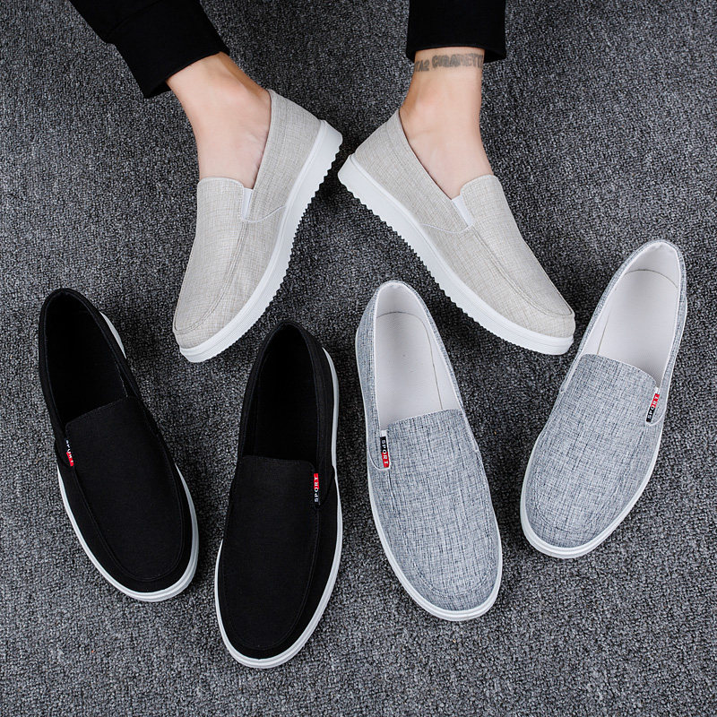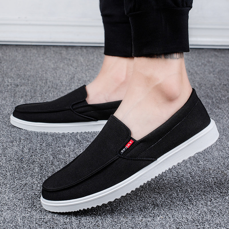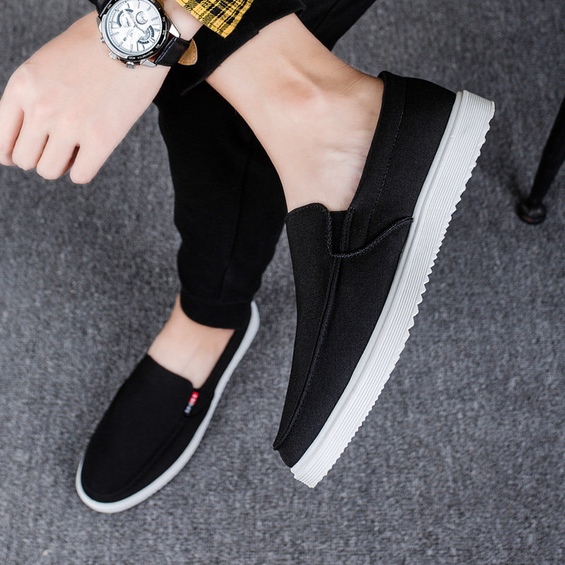 [男鞋老北京布鞋男士帆布鞋韩版潮流懒人鞋一脚蹬休闲不系带工作鞋]