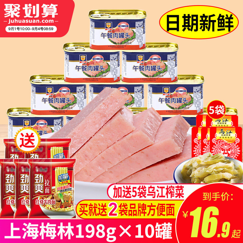 Шанхай Мерлин обед на обед мясо мясо 198g*10 Приготовленное мясо ветчины на открытом воздухе продукты питания горячая горшка ингредиенты