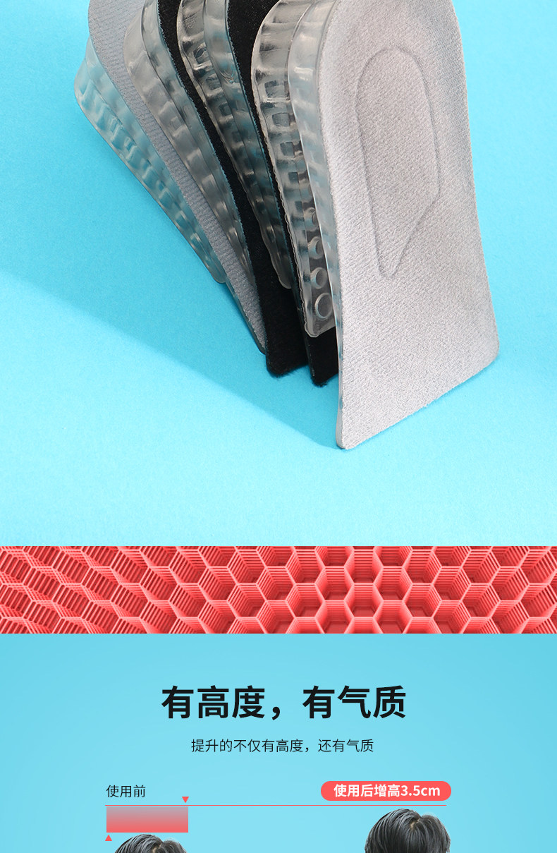 Мужские невидимые стельки для увеличения роста, полустельки, напяточники