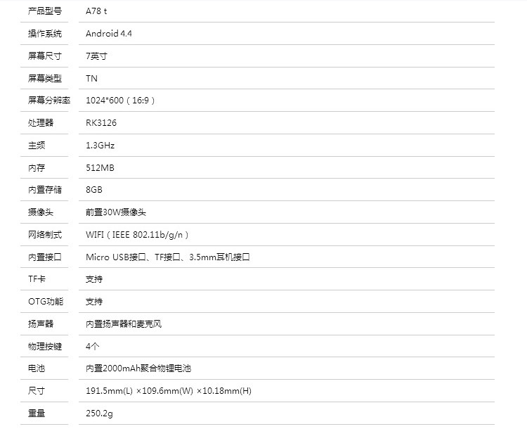 Teclast/Taipower A78T Wi -Fi 8GB Android Plablet Computer 7 -Inch Quad -Core Processor Movie
