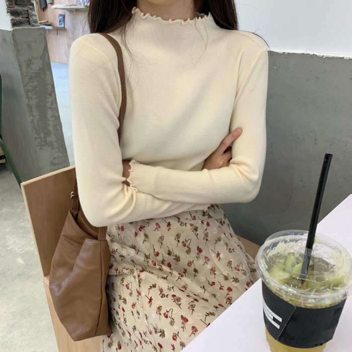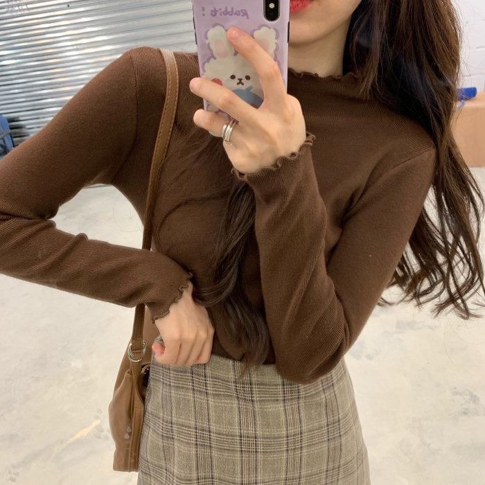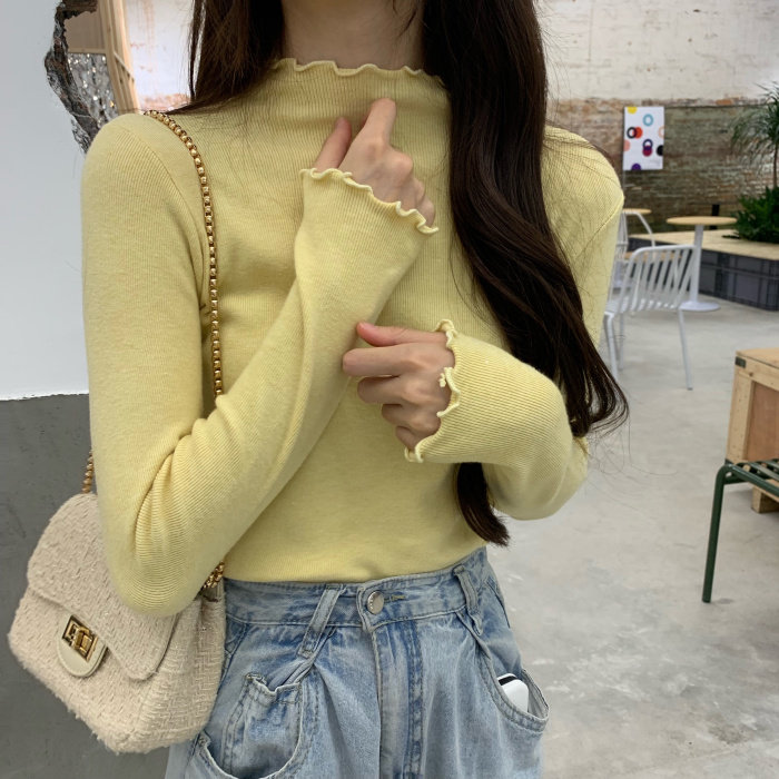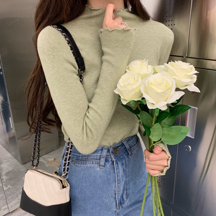 Демисезонная утепленный лонгслив, трикотажные нарукавники, свитер, в корейском стиле, облегающий крой, по фигуре