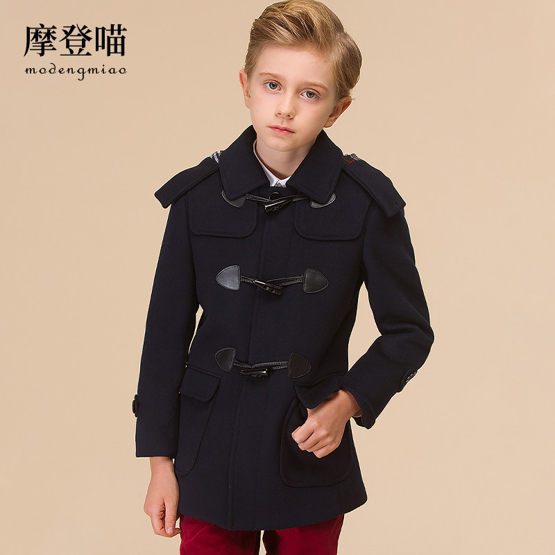 Шерстяное пальто для мальчиков, длинная куртка, увеличенная толщина, в британском стиле, подходит для подростков, средней длины