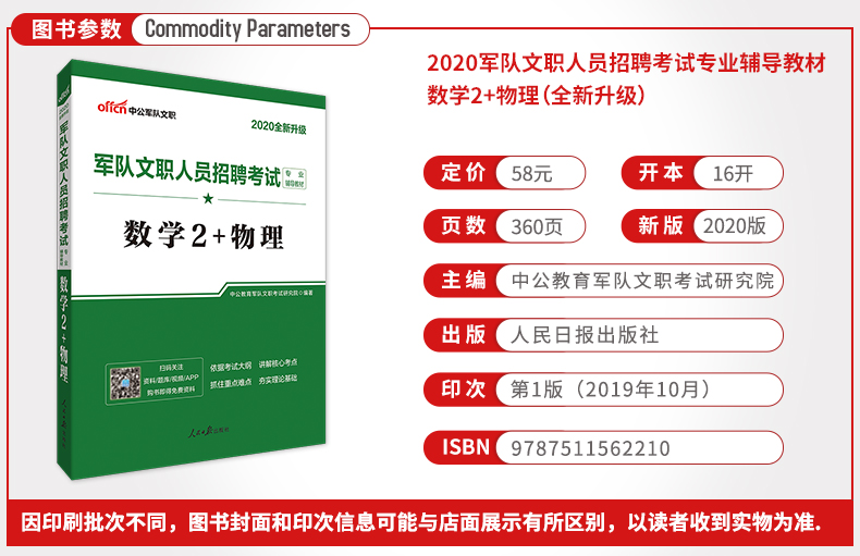 Книга Экзамены по подбору персонала Армии Армии Образования Чжунгонг 2021 Армейс Армейский культурный экзамен по набору персонала Профессиональный учебник Математика 2+ Физика (новое обновление) 2021