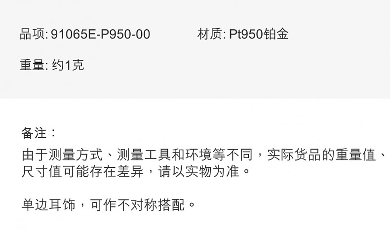 周生生 Давайте поиграем на ушной игре Pt950 Platinum Sanye Серьги одиночные серьги 91065E