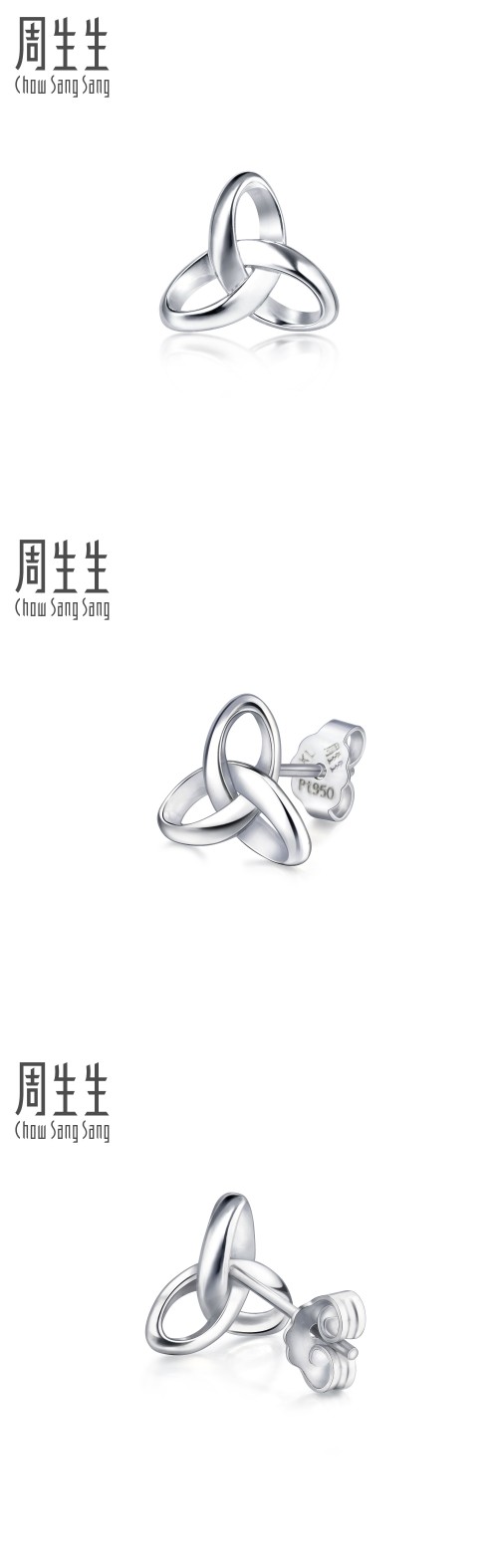 周生生 Платиновые трехмерные серьги, платина 950 пробы