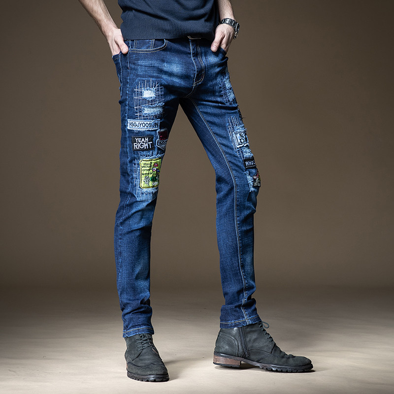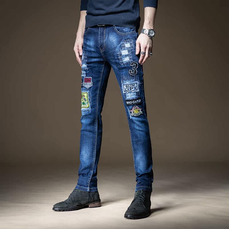 杰雷诺 Трендовые джинсы, штаны, с вышивкой, в корейском стиле