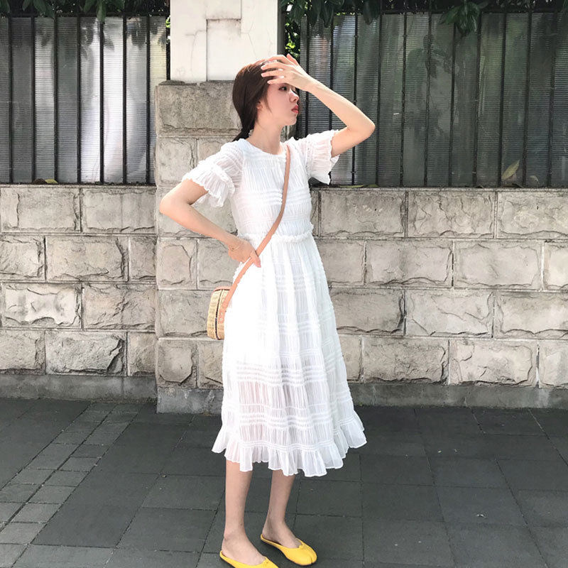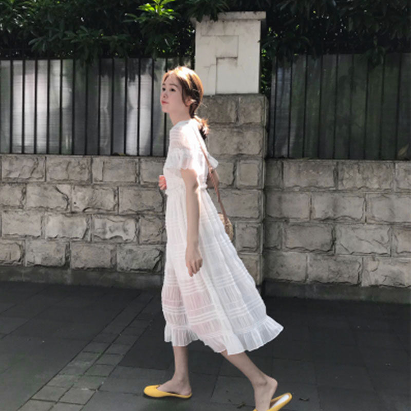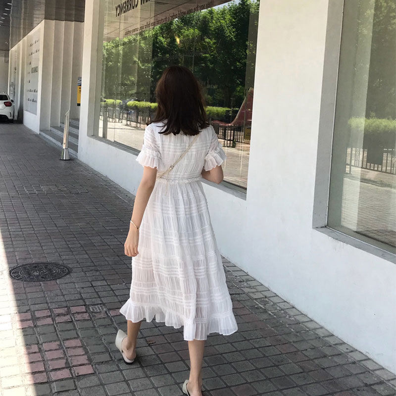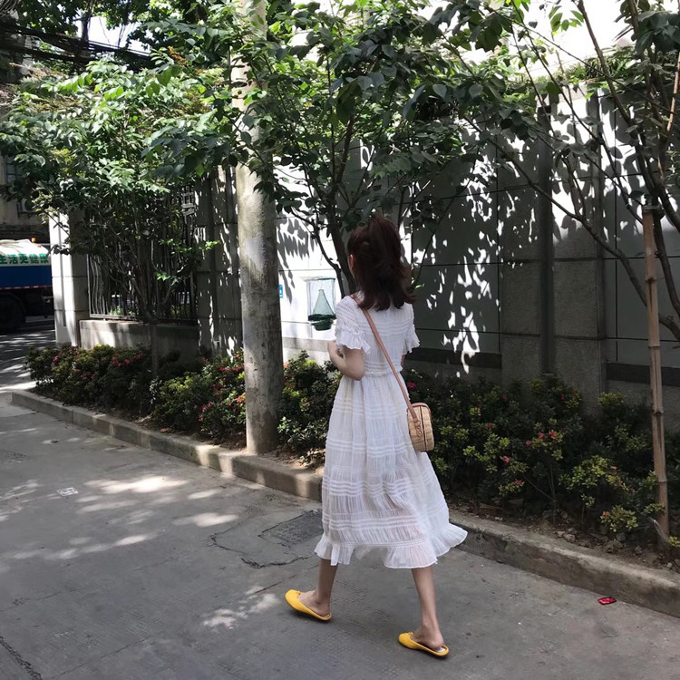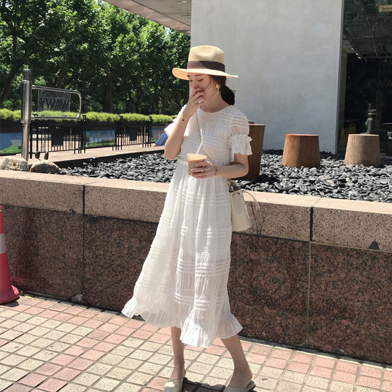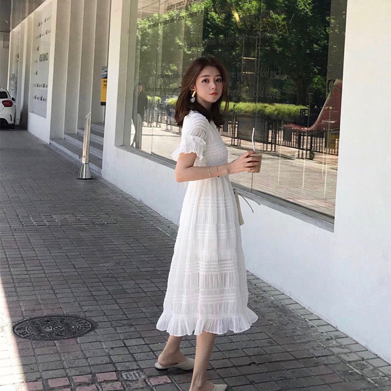 Скандинавское белое платье, корсет, базовая длинная юбка, скандинавский стиль, длина миди, французский стиль