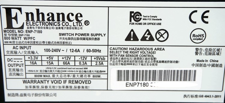 Yiheng Enhance ENP-7180 ​​Оценка 800 Вт SFX-L Power Piews Piews Titanium/Yinxin SX800-LTI