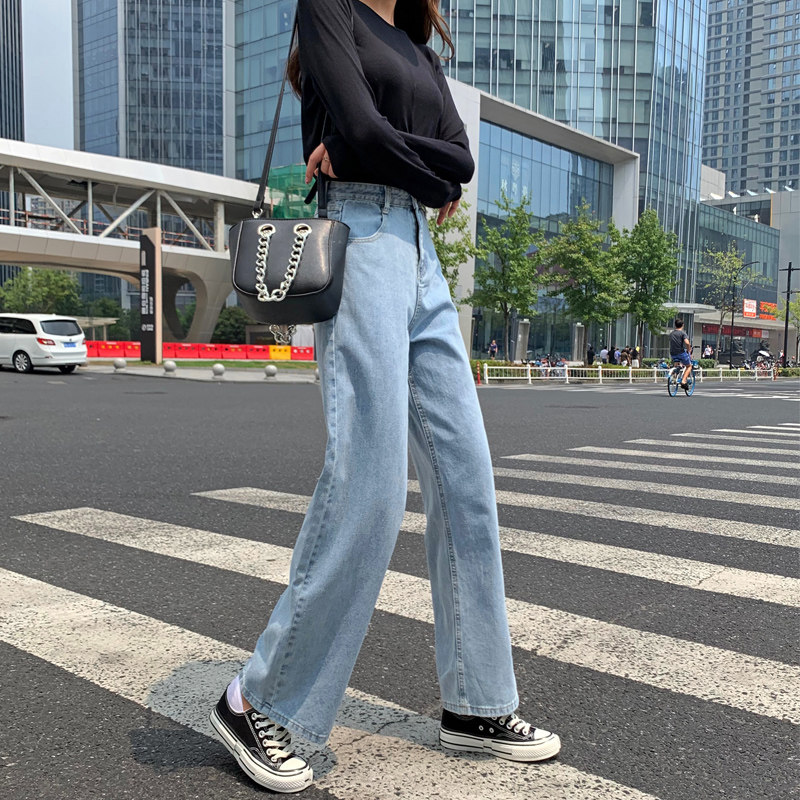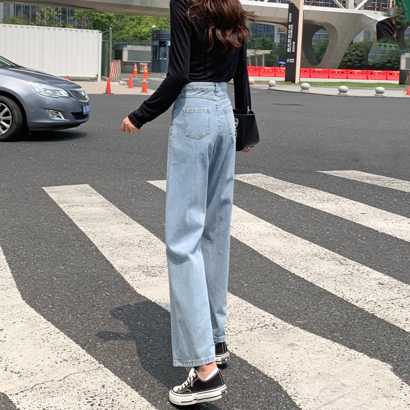 Джинсы, осенние штаны, высокая талия, подходят для подростков, свободный прямой крой, большой размер