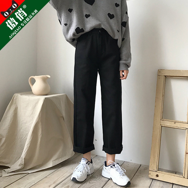 Джинсы, штаны для школьников и студентов для отдыха, высокая талия, большой размер, подходит для полных девушек, свободный прямой крой