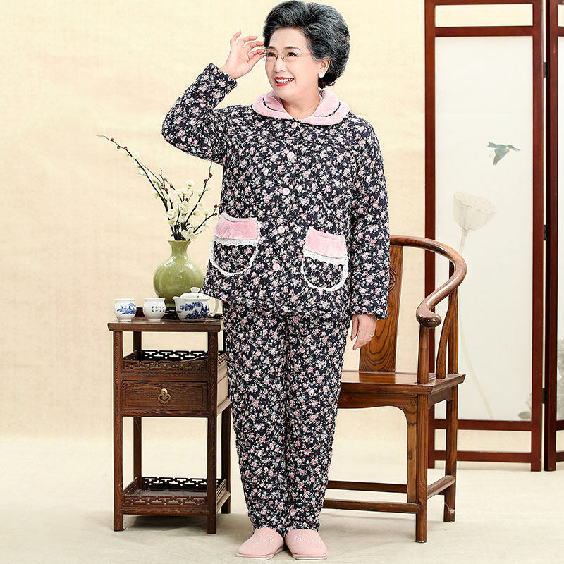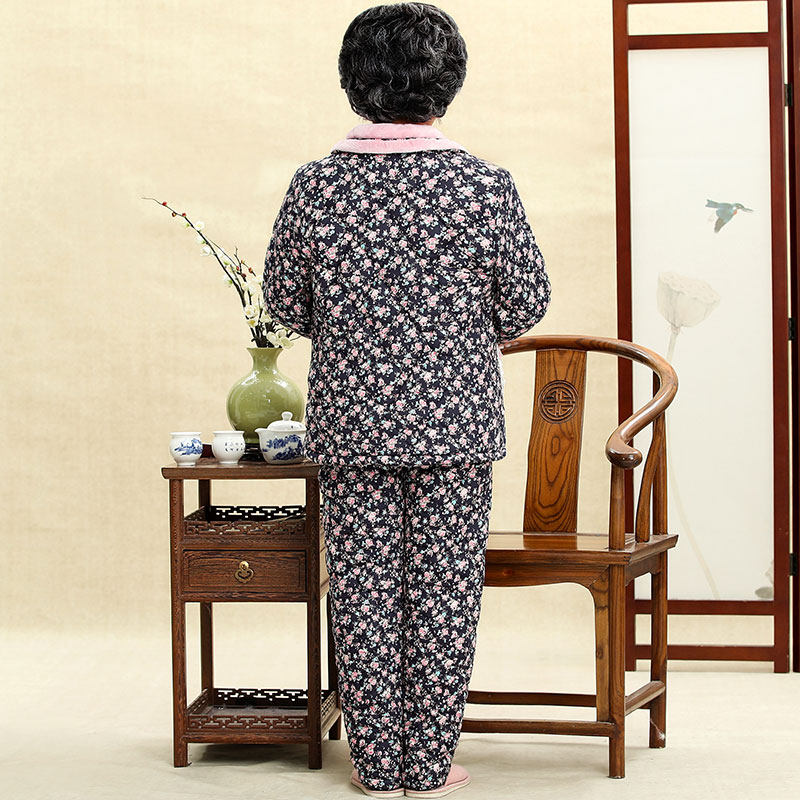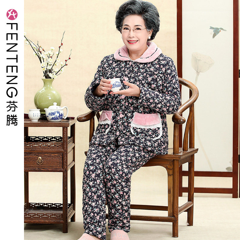 芬腾 Демисезонный коралловый бархатный стеганый хлопковый лонгслив для пожилых людей, куртка, комплект, для среднего возраста