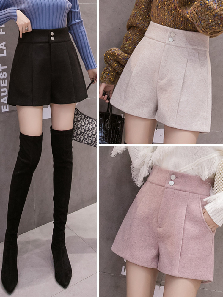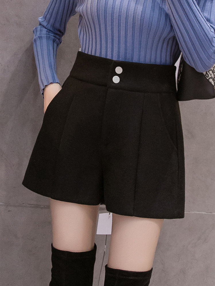 Шерстяные шорты, осенние базовые черные штаны, коллекция 2021, высокая талия, популярно в интернете, А-силуэт, свободный крой