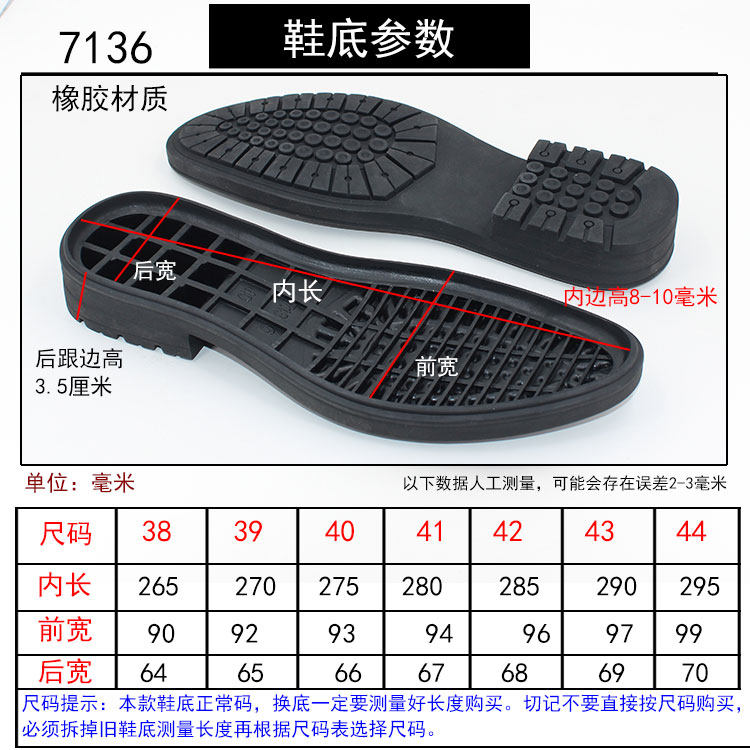 Мужская резиновая обувная подошва, чтобы изменить нижнюю материал для ремонта обуви для ремонта обуви ручной работы, не сжимания, истирающаяся толстая ватная обувь 7136