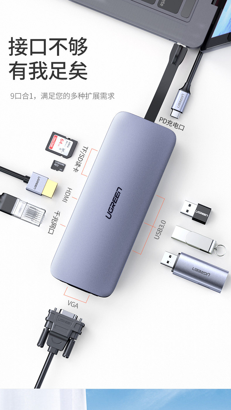 绿联 Type-C Exted Dock iPadpro расширяет USB3.0 Rotor MacBook Air Converter HDMI Lightning 3 подходит для компьютера для ноутбука SummerGo
