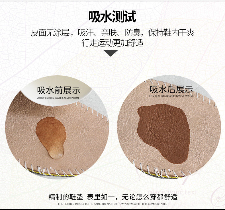 Кожаные дышащие амортизирующие мягкие комфортные стельки подходит для мужчин и женщин, впитывают пот и запах, мягкая подошва