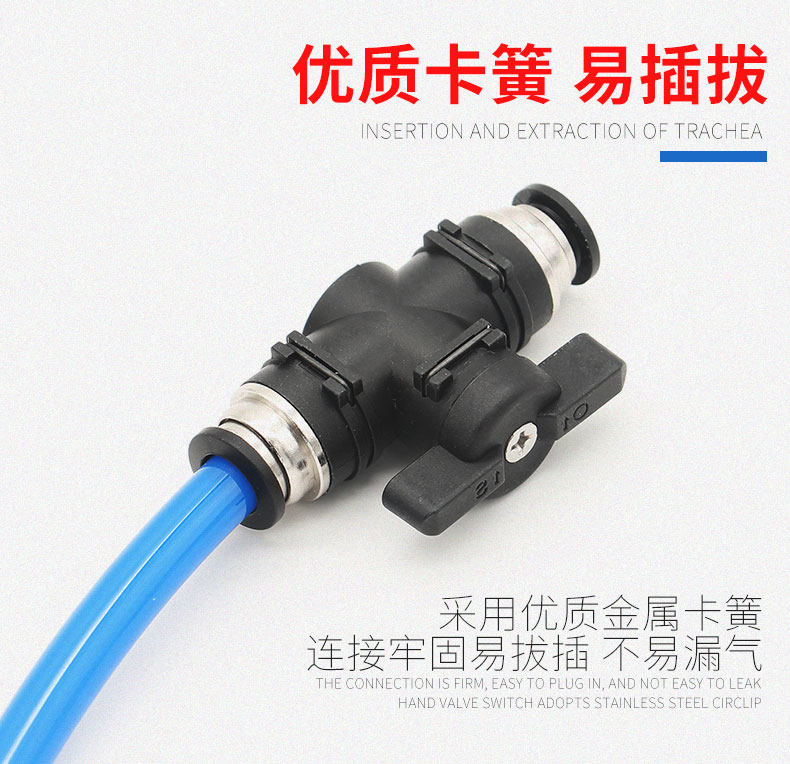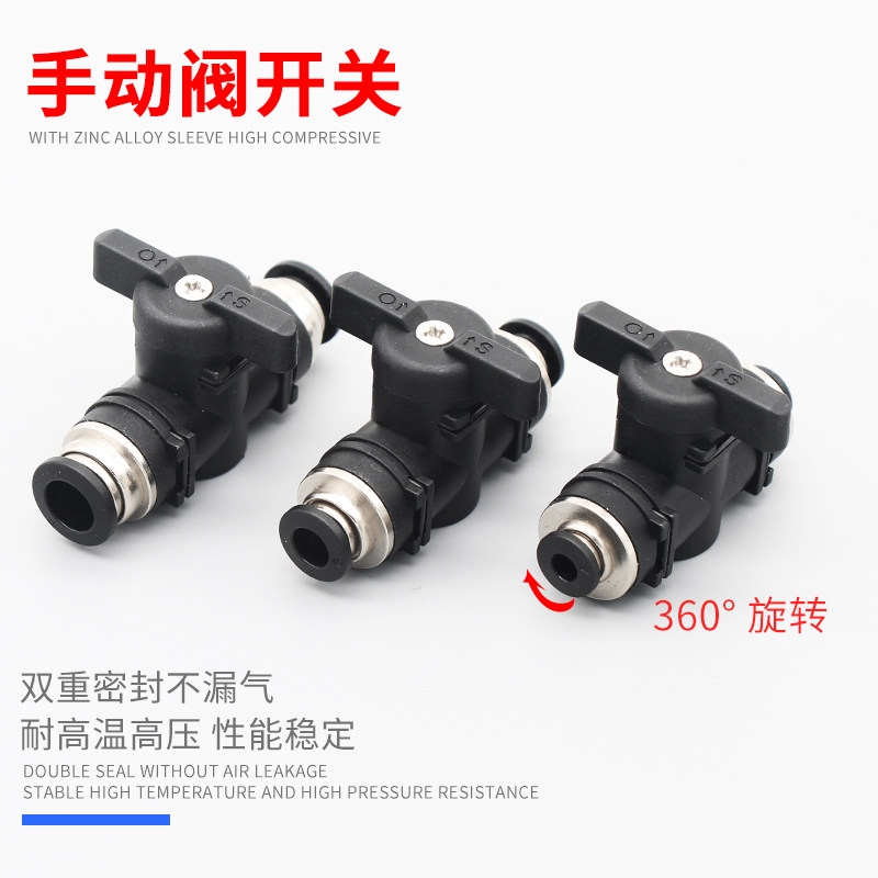 PU воздушная труба Черная пневматическая ручная клапан BUC BUC BUC BUC-4/6/8/10/12 мм Пневматический шариковой клапан разъема быстрого разъема