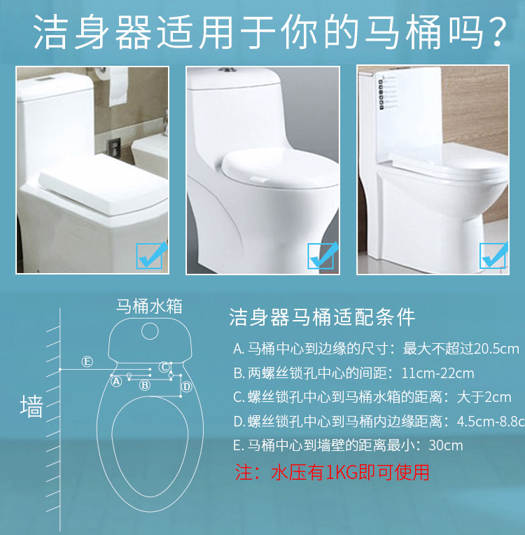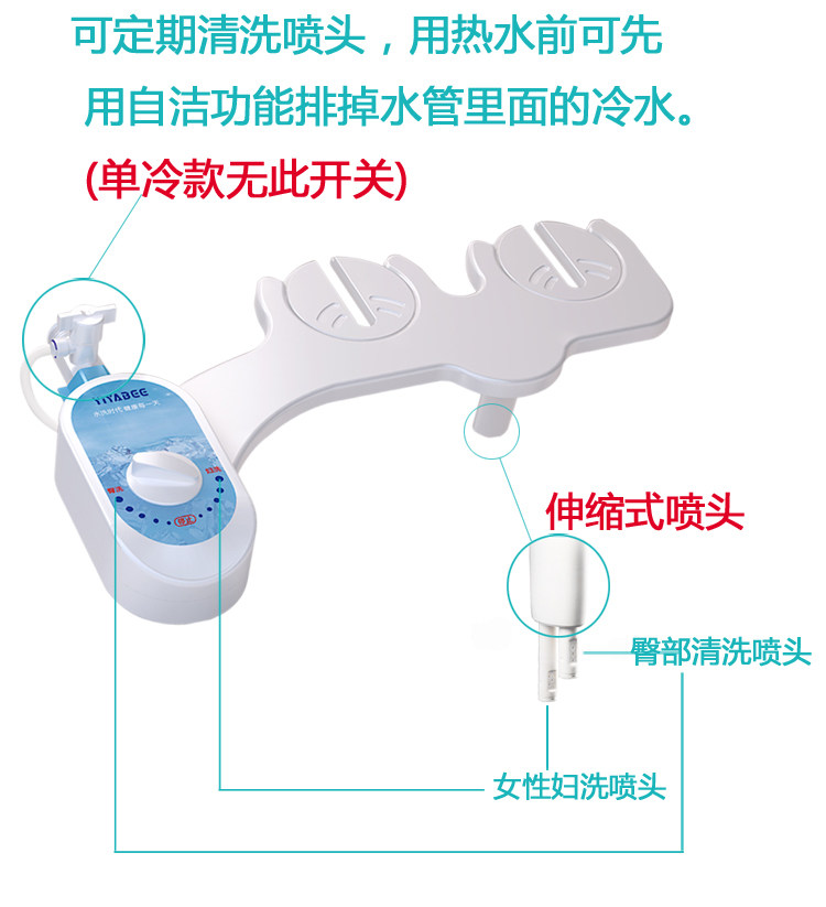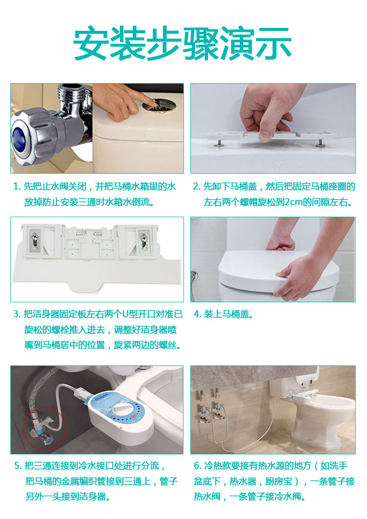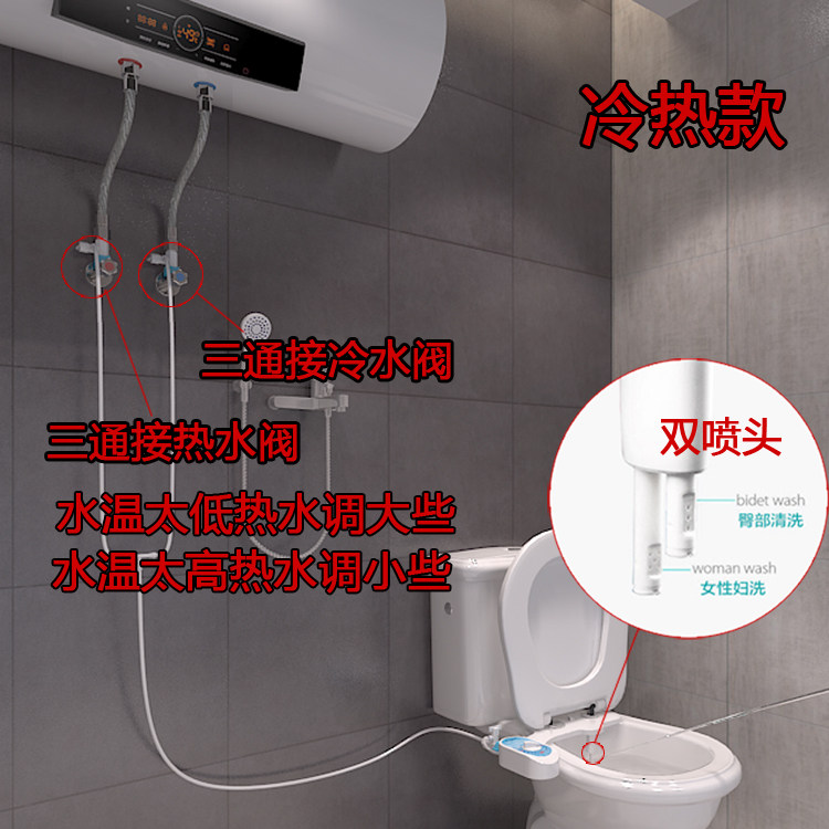 Скрытый конструкция с двойным брызги (прикладная, женщина для мытья), чистая и гигиеничная, и его легче использовать, чем аэрозольный пистолет.Бесплатные футболки, прокладки туалета и прокладки фильтров.Одиночная модель двойной сплайки Специальная цена 88 Юань(Стандартная оборудована 1 -метровой трубой), просто подключите разъем холодной воды рядом с туалетом.Горячая и холодная модель двойного брызги составляет 115 юаней. Вам нужна горячая вода в ванной, чтобы купить горячую и холодную модель. Труба горячей воды подключена к границе раздела, посредством которого проходит горячая вода (например, водонагреватель, под варенью, душ, Xiaoqibao и т. Д.). Горячая и холодная труба находится в 4 метра. Если этого недостаточно, вы можете сказать Службе поддержки клиентов расширить трубу.