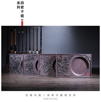 Zhaoqing Duanyu Terrace Подлинная литература Четыре сокровища, упрощающую натуральную розовую резьбу ручной работы 6-7-8-10 дюймов, принося подарки подарки для ведущего парня Songkeng Meilan Bamboo Chrysanthemum Четыре джентльмена