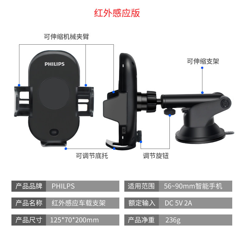 Philips, беспроводной держатель для телефона, автоматическое динамичное индукционное зарядное устройство для автомобиля
