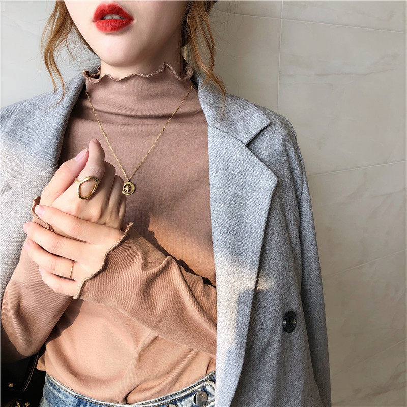 Женская бархатная базовая рубашка с осенью и зимним стилем 2023 Новый внутренний износ утолщенные полувыятные черные серьги с горячим топом