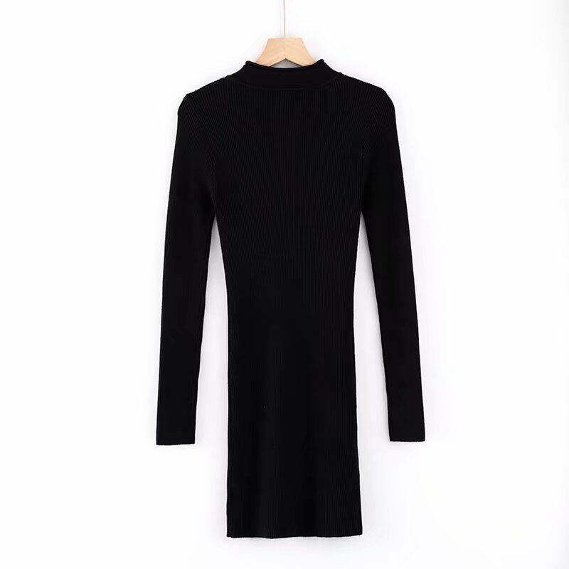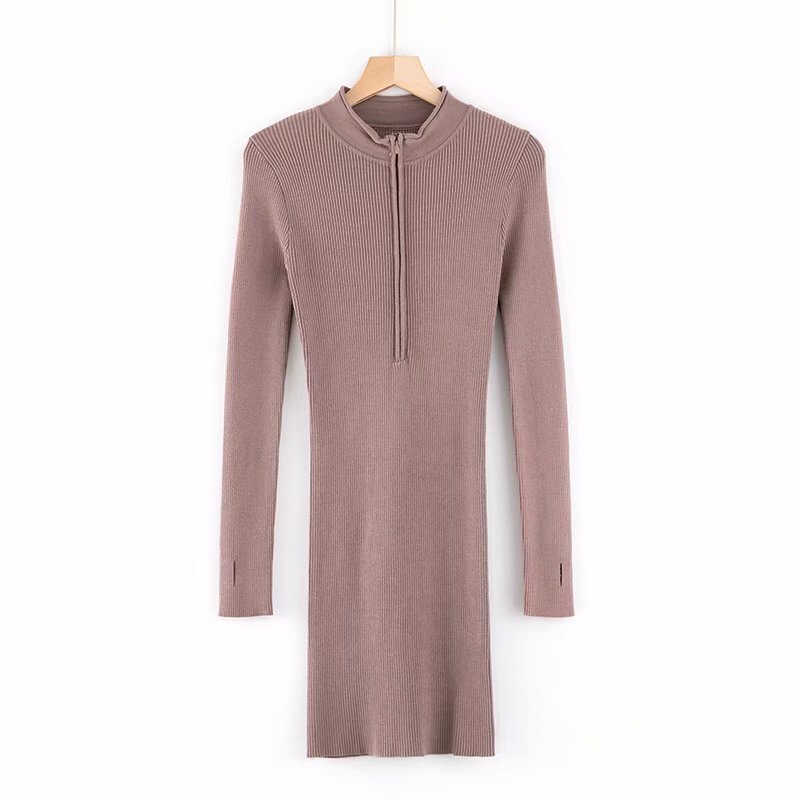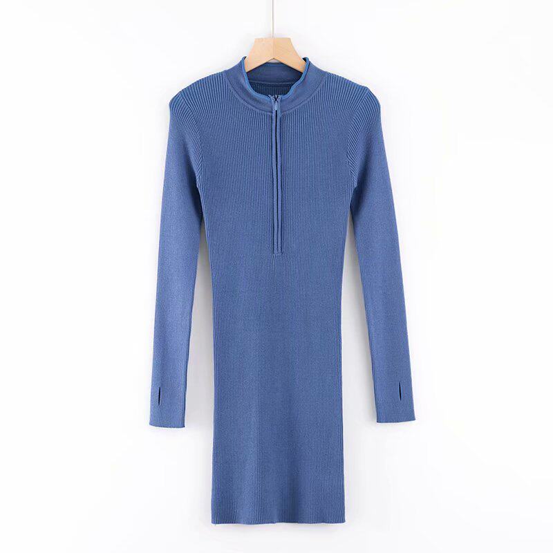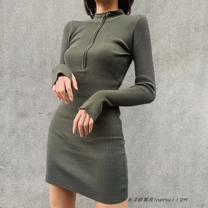 Зимний трикотажный сексуальный приталенный лонгслив с молнией, флуоресцентное платье, европейский стиль