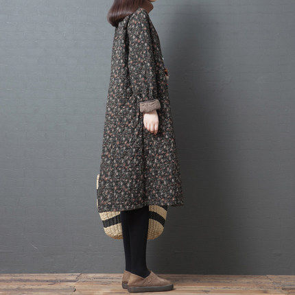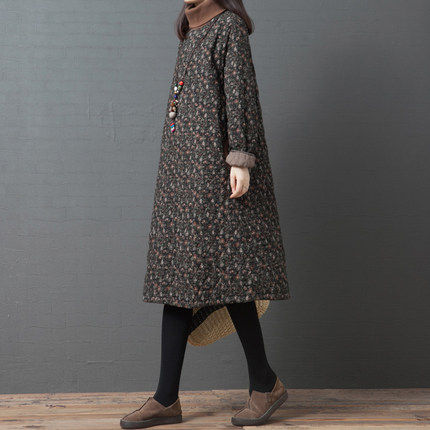 Демисезонное ретро стеганое платье, базовая длинная юбка, 2020, цветочный принт, из хлопка и льна, увеличенная толщина, средней длины