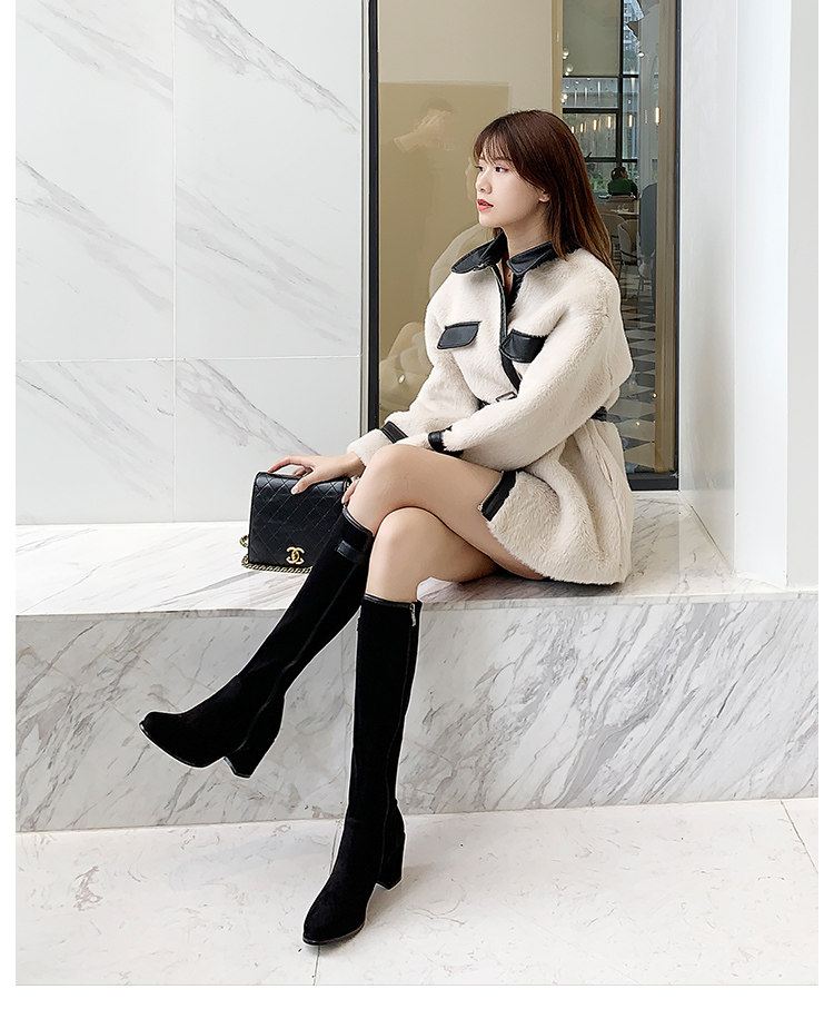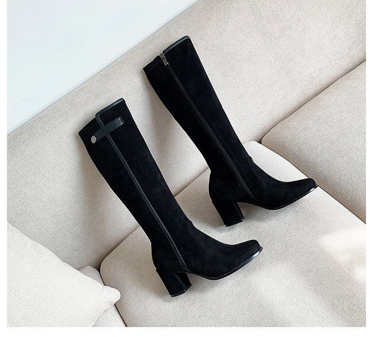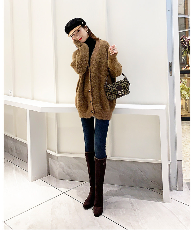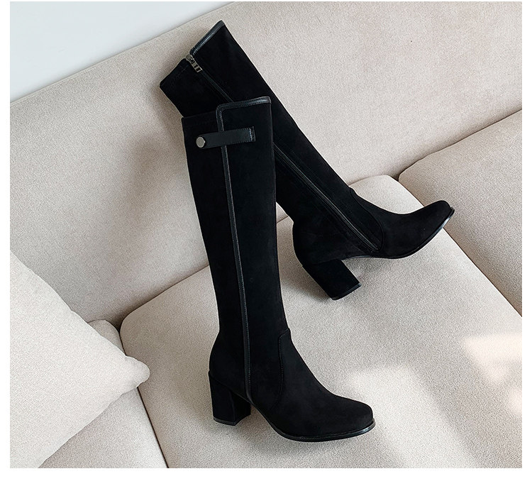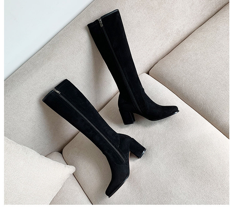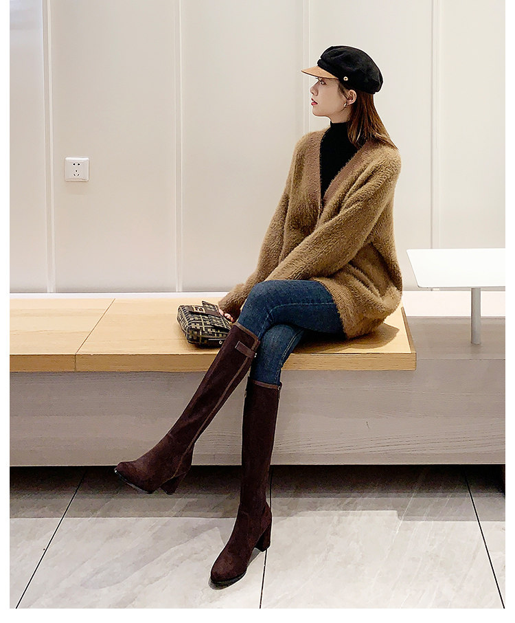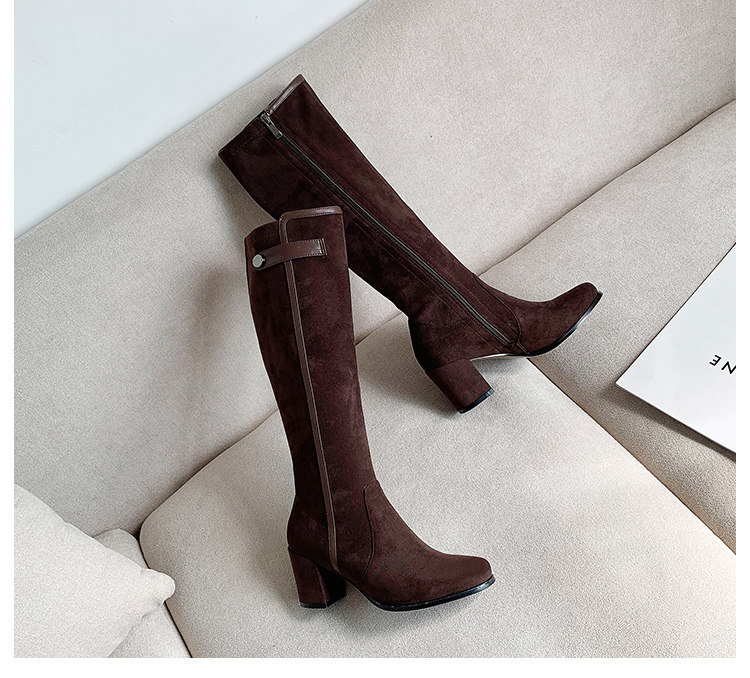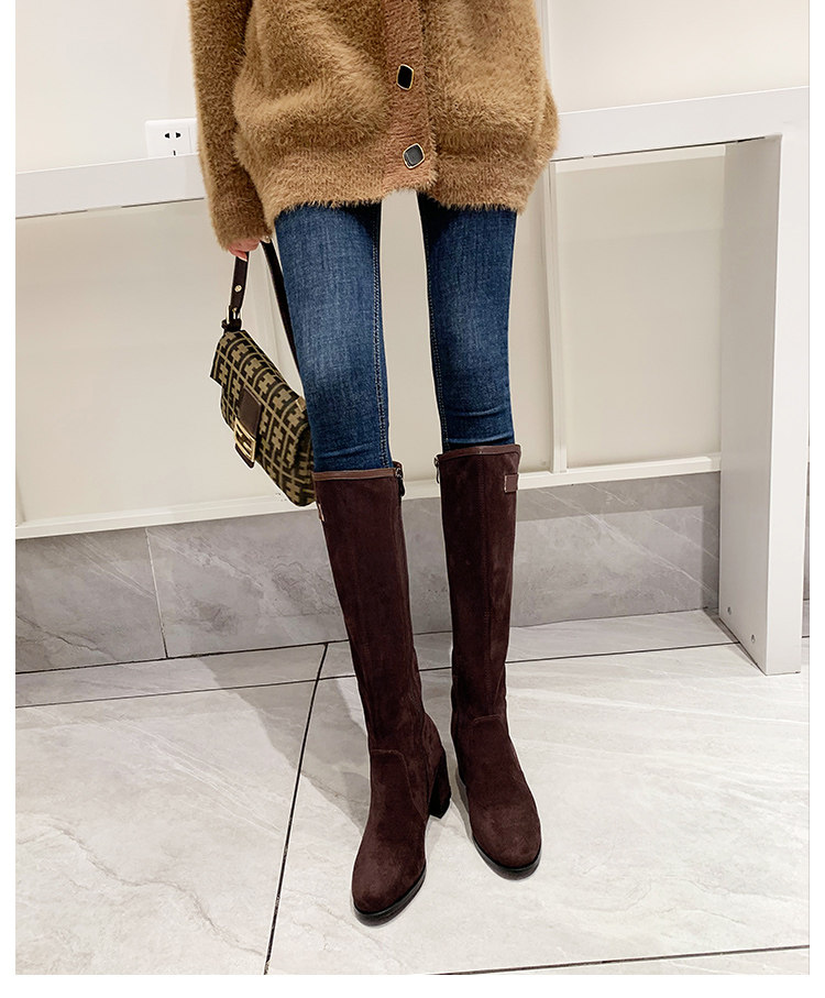 2024 зимние коричневые женские сапоги, сапоги не выше колена 150 см, высокие каблуки, сапоги до середины икры, эластичные высокие рыцарские сапоги